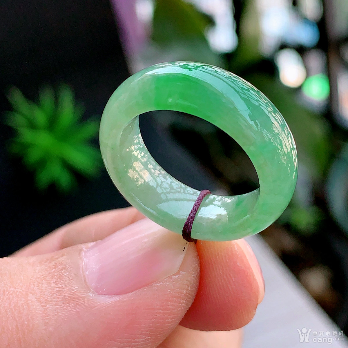 缅甸天然翡翠A货冰透水润飘绿戒指17.8圈口