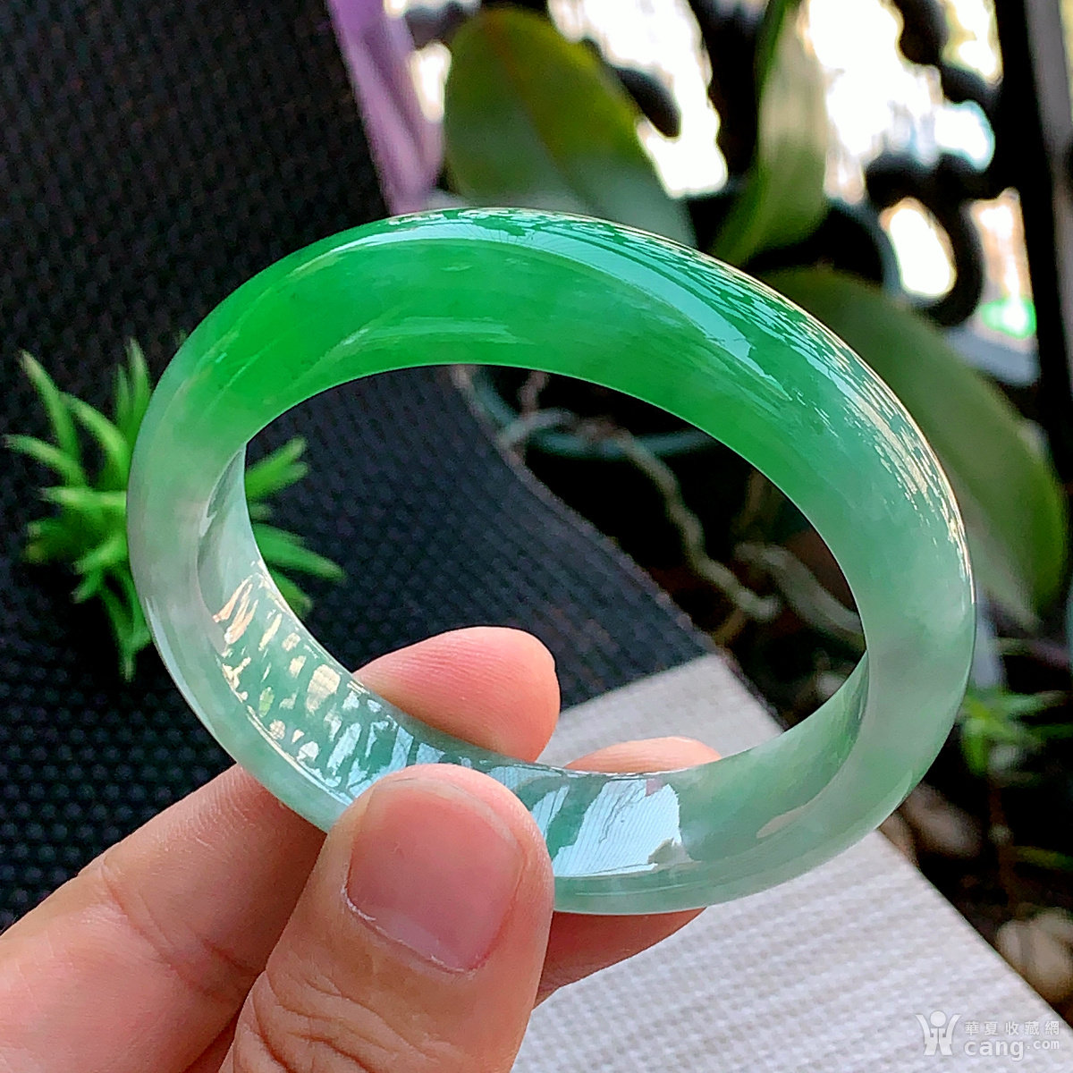 缅甸天然翡翠A货冰透水润飘阳绿宽边手镯58圈口