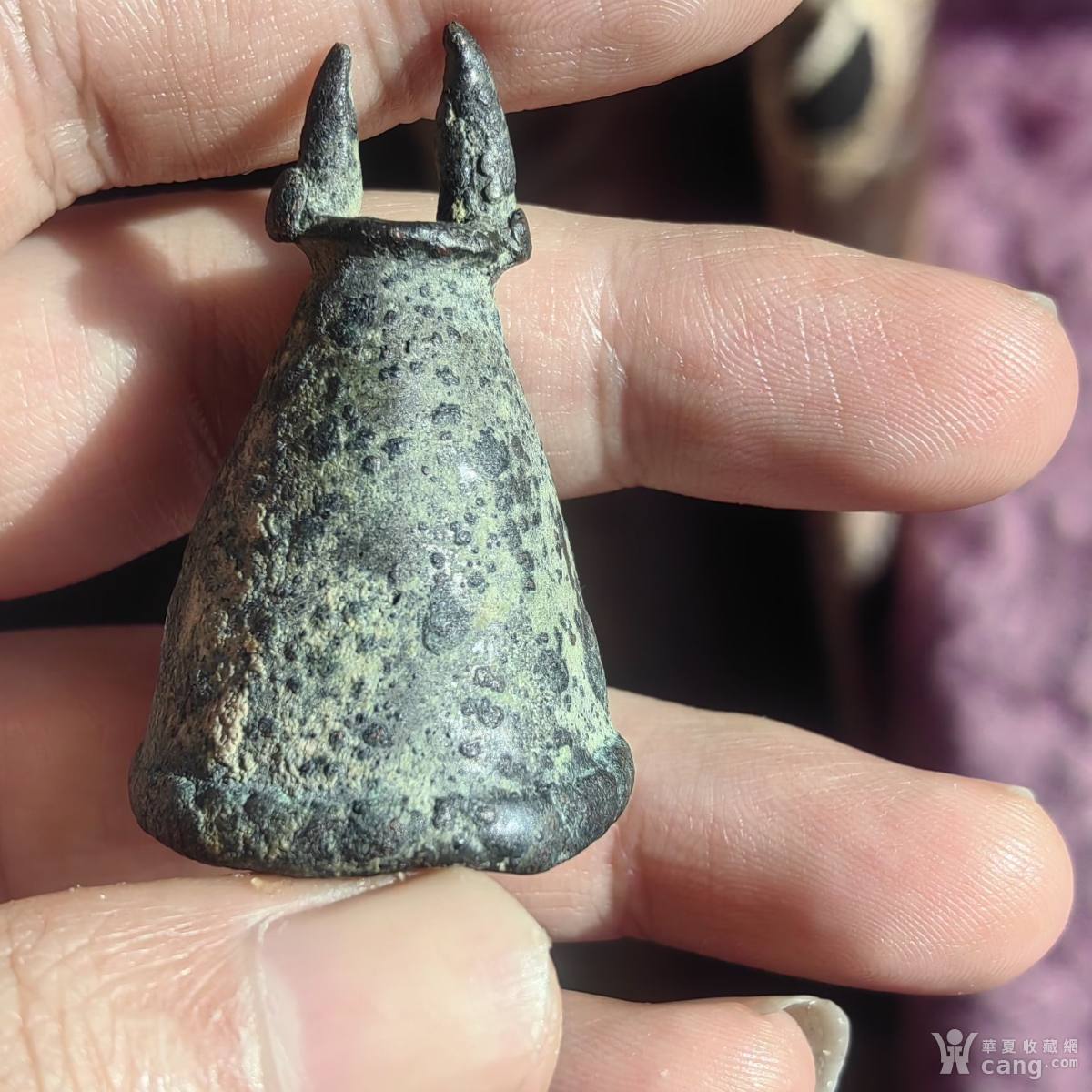 汉代青铜铃铛,没漏洞有几出裂,罕见羊角领导,几千年了,能保存