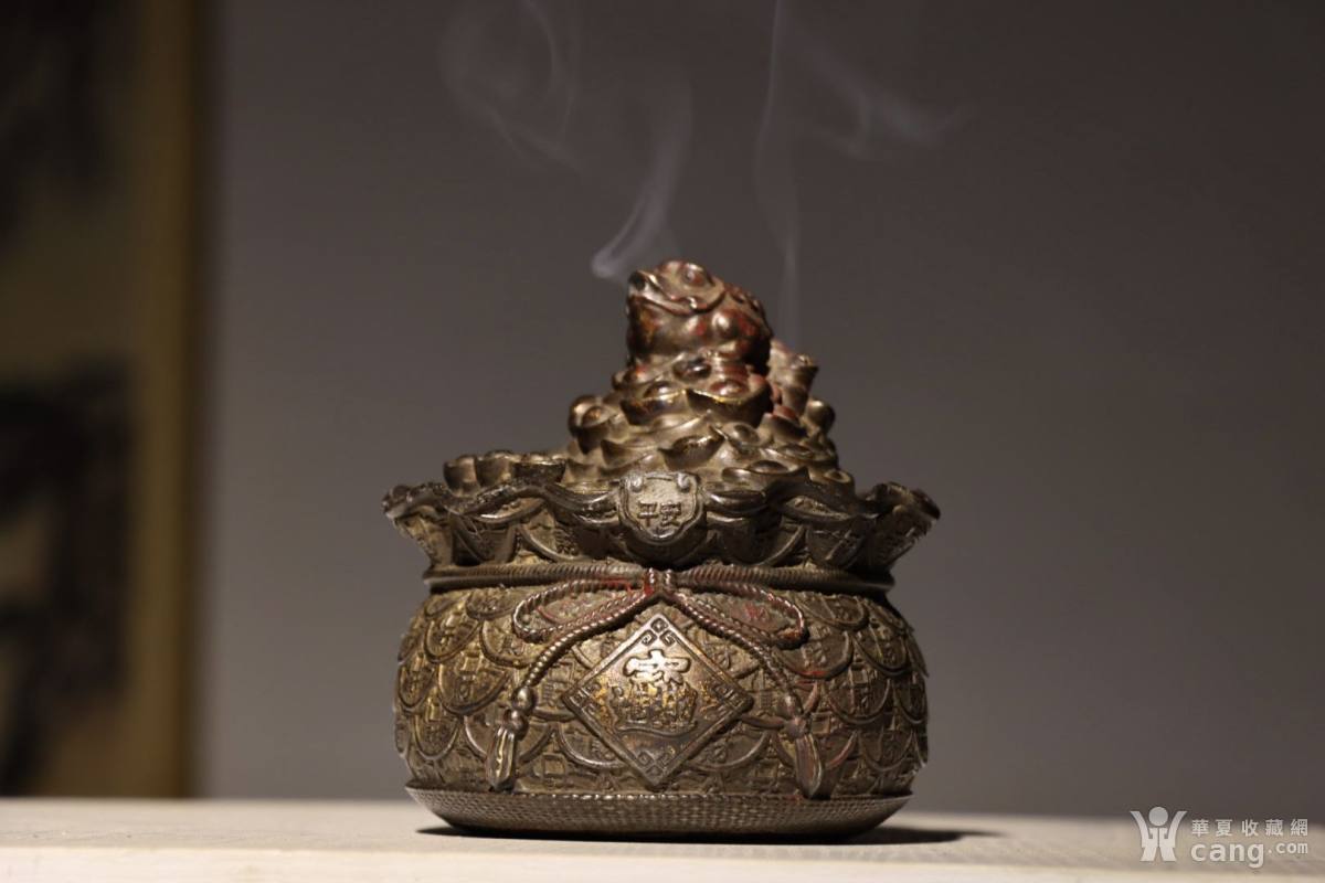 招财金蟾熏香炉 铜鎏金 高13宽13口径9 炉身雕刻招