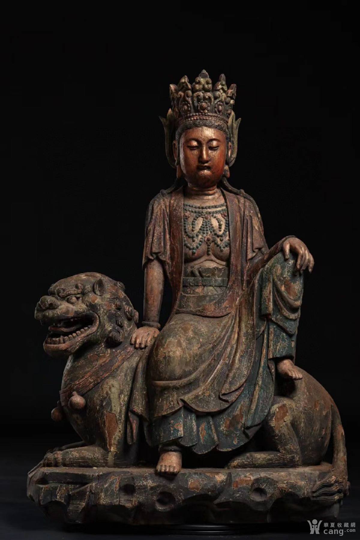 木雕漆金•文殊菩萨造像 楠木 高90 宽64 厚32厘米 面