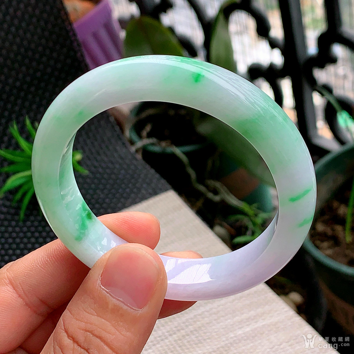 缅甸天然翡翠A货冰润春带彩宽边手镯59圈口