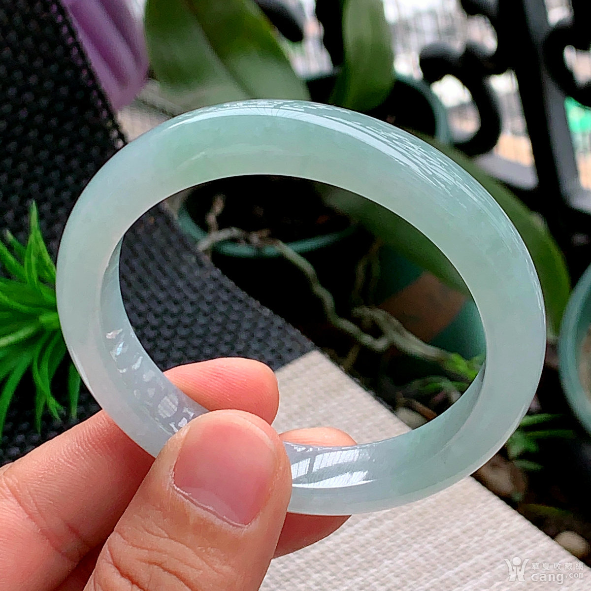 缅甸天然翡翠A货冰透水润飘绿宽边手镯58.7圈口