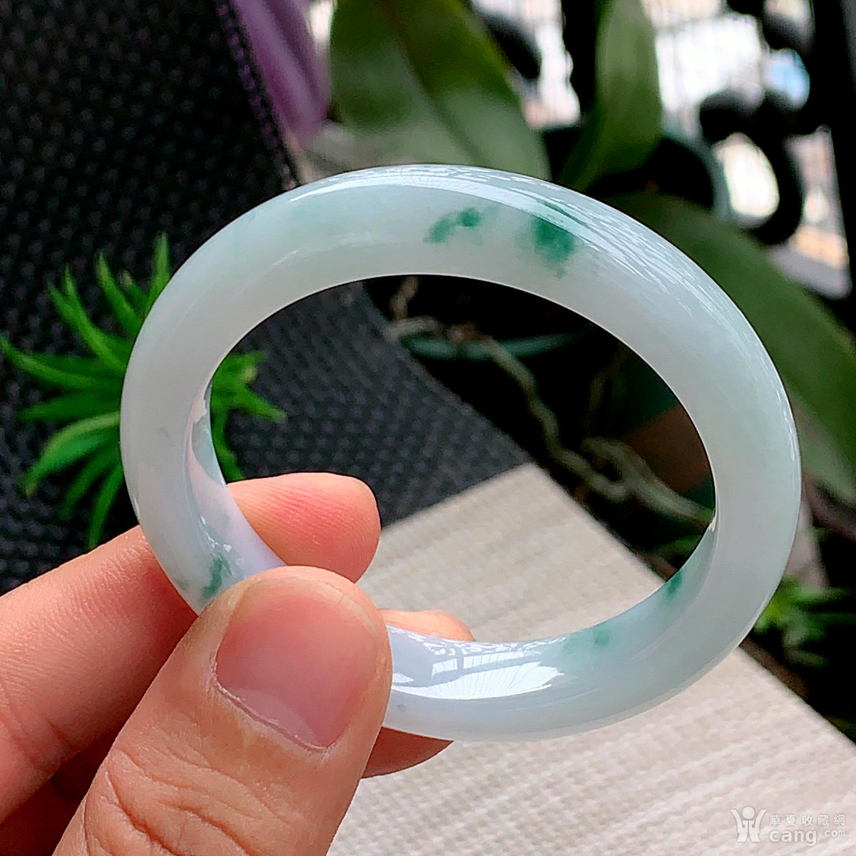 缅甸天然翡翠A货冰润飘绿宽边手镯52圈口