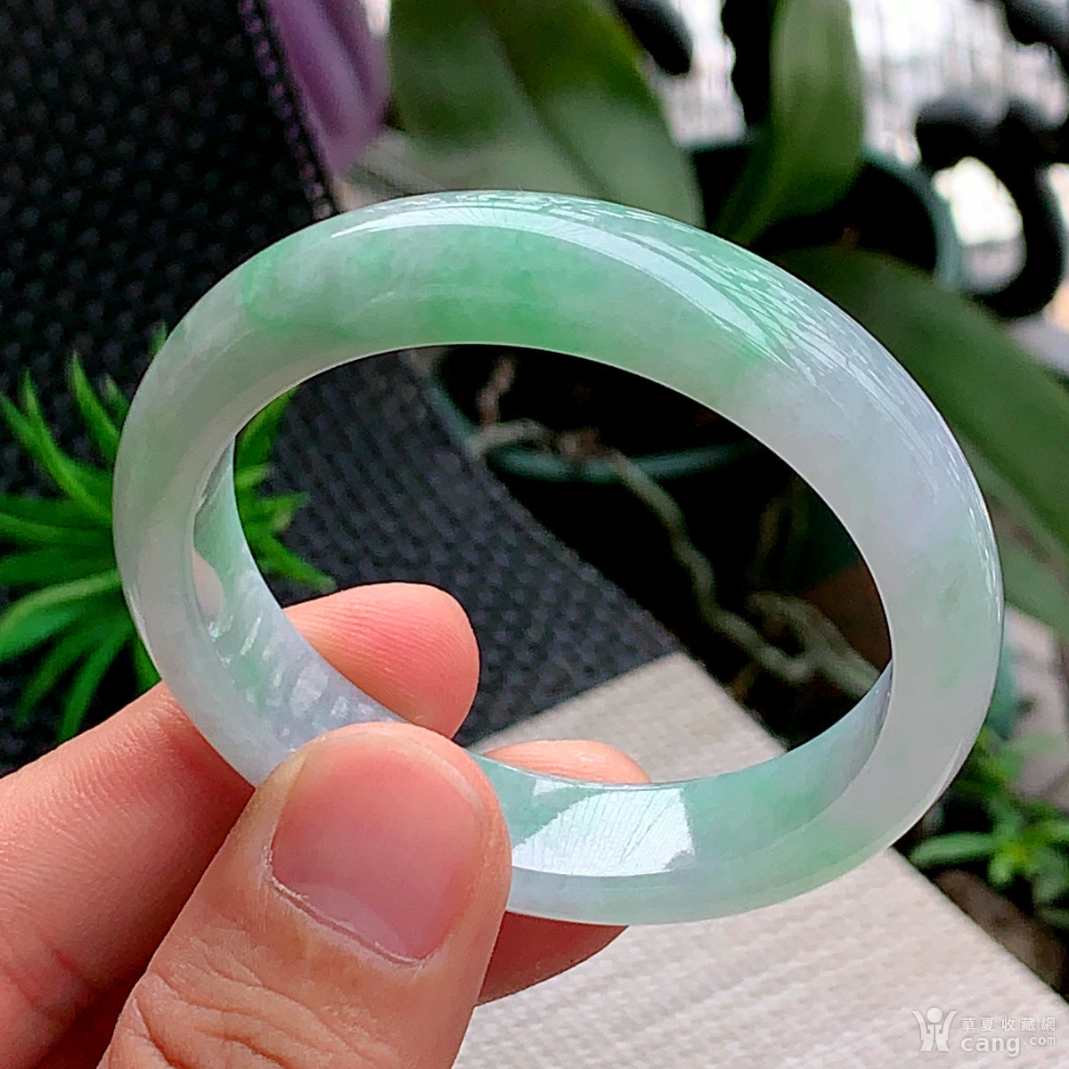 缅甸天然翡翠A货冰透水润飘绿宽边手镯52.2圈口