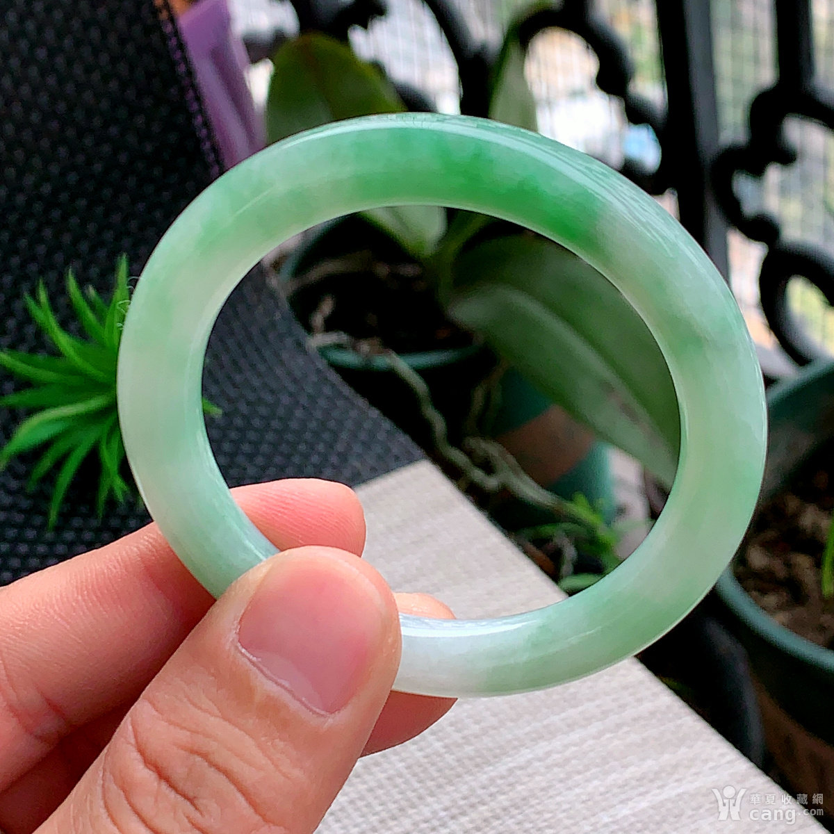 缅甸天然翡翠A货冰透水润飘绿圆条手镯53.3圈口