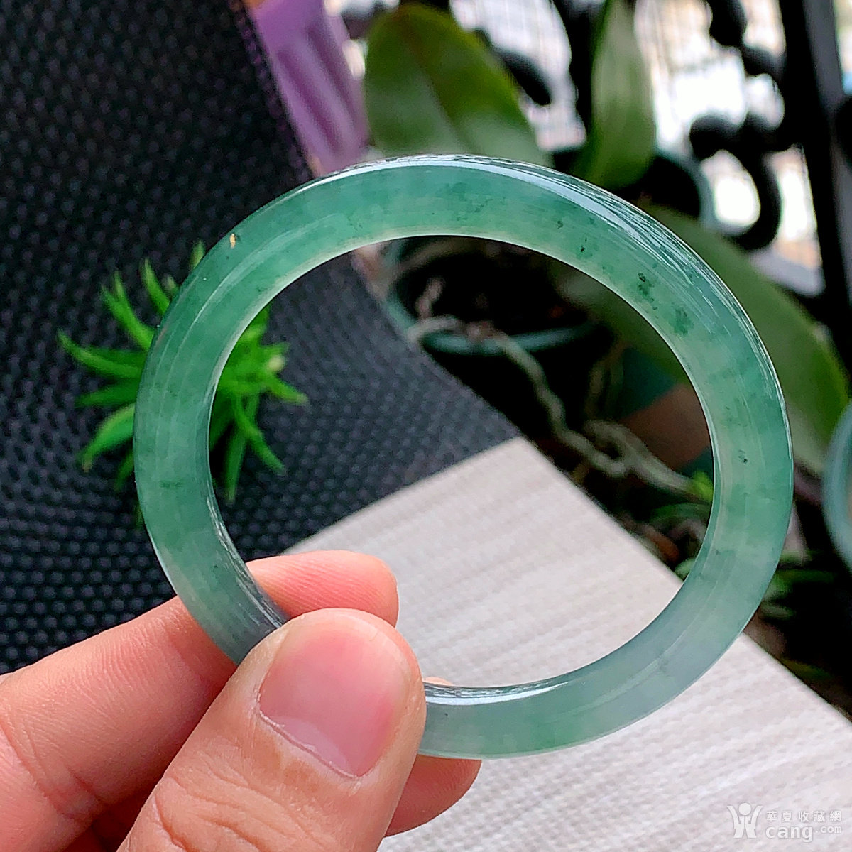 缅甸天然翡翠A货冰透水润飘绿圆条手镯55.5圈口