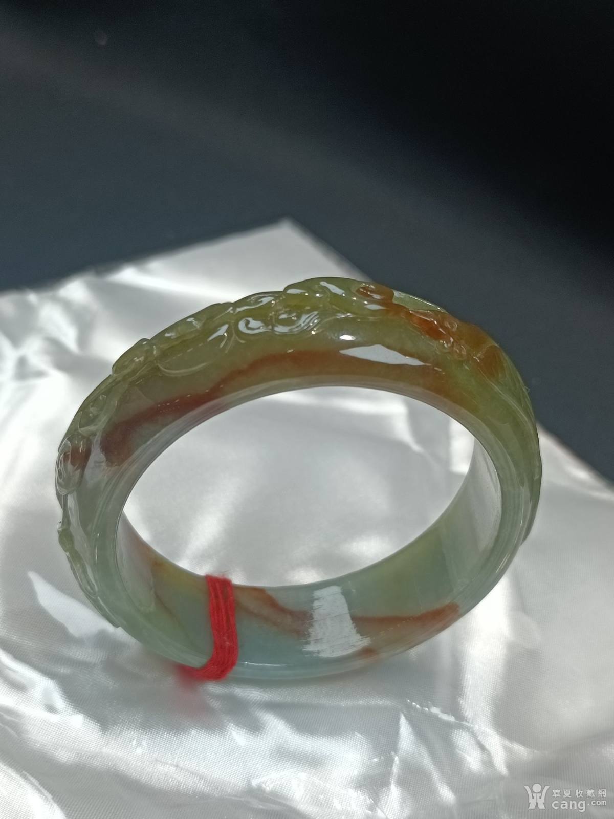 老翡翠天然红黄翡龙凤呈祥手镯。