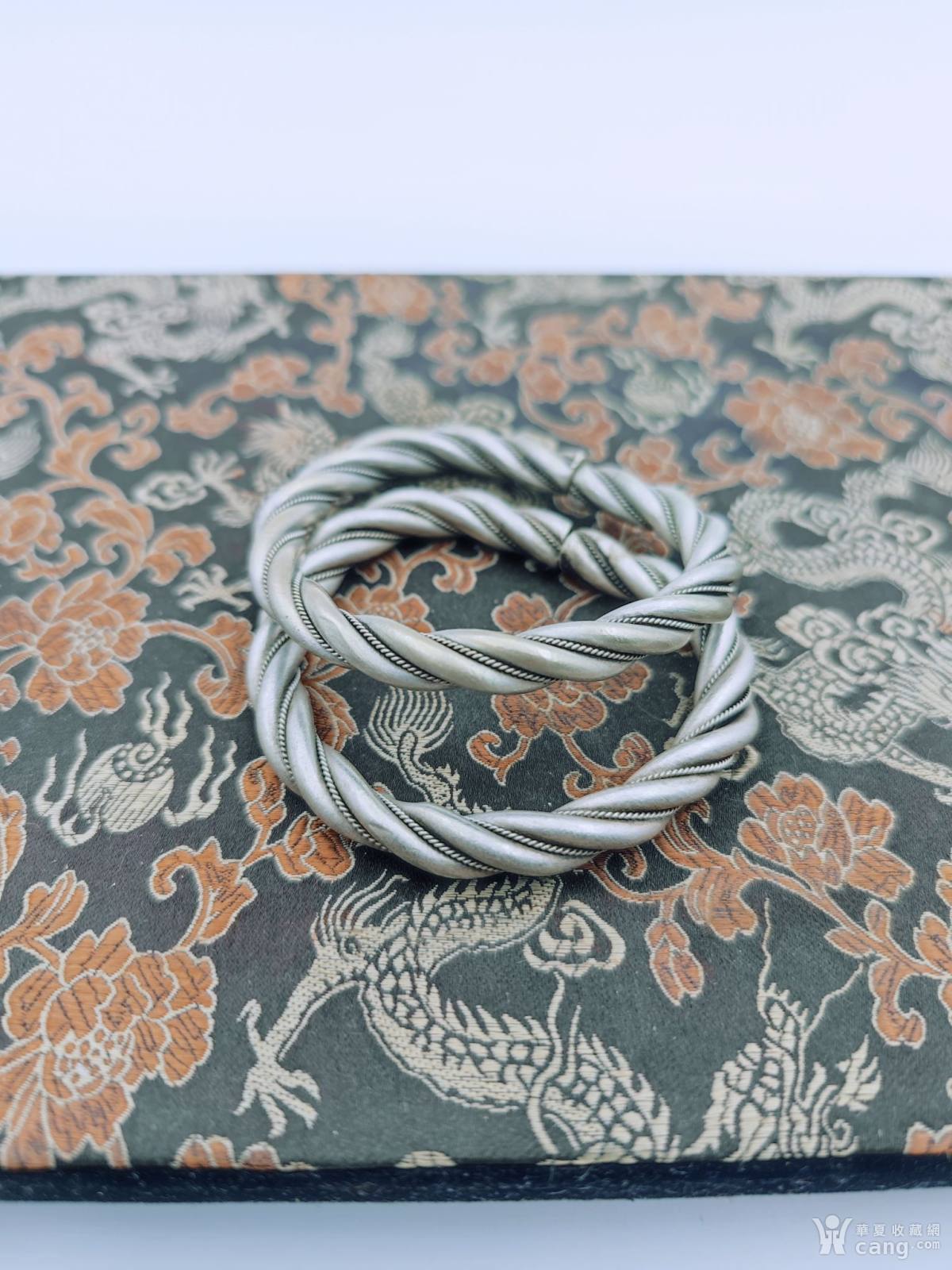 清代夹丝老银手镯一对