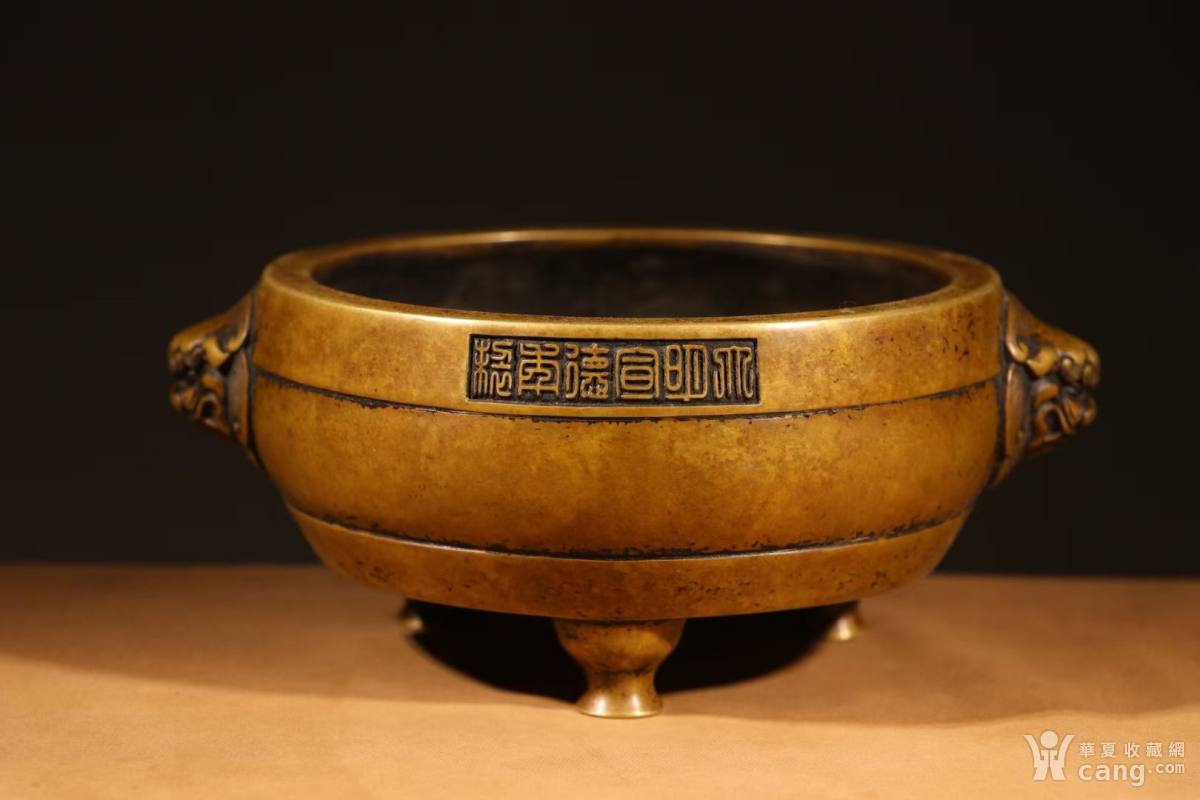 佛前供具(香炉)双耳兽,三足鼎立,边口年款可见,手感厚重,内