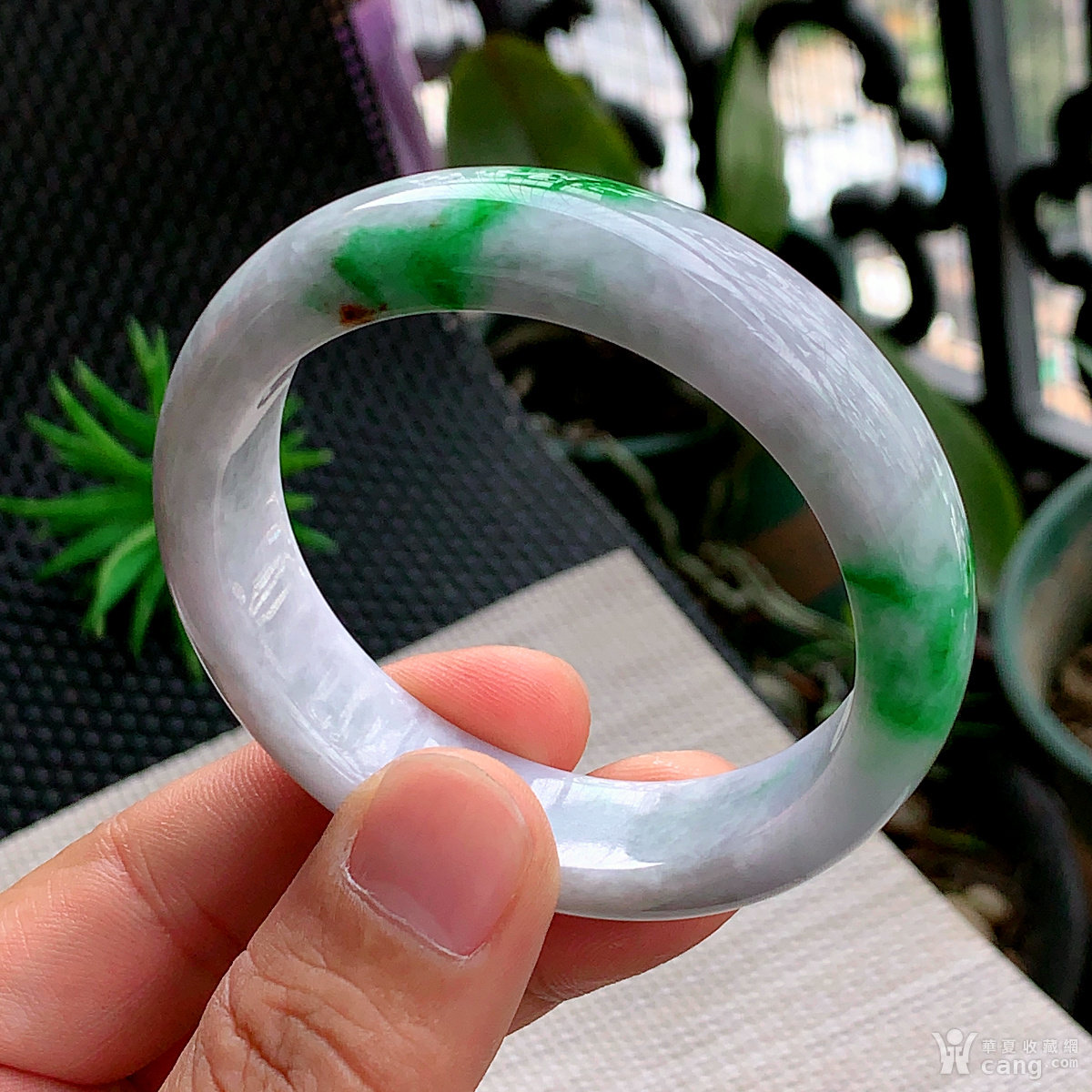 缅甸天然翡翠A货冰润飘绿宽边手镯55.8圈口