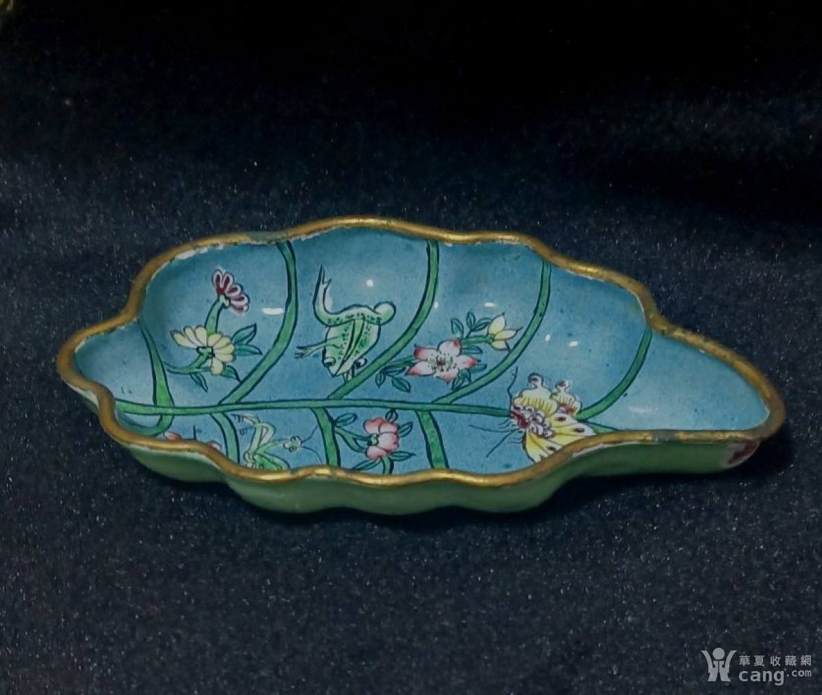 收藏佳器 铜胎画珐琅描金树叶洗