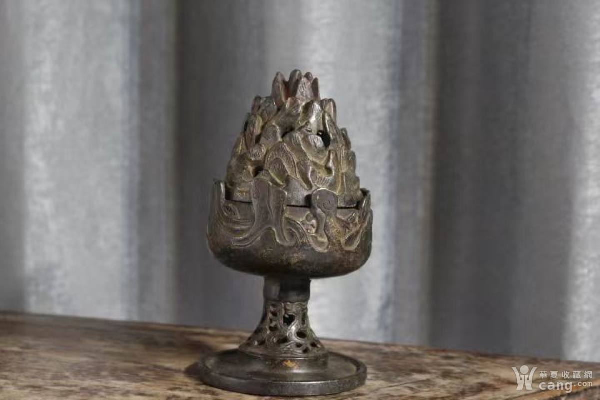 案头陈设 博山炉 铜鎏金 全品完整 皮壳老辣