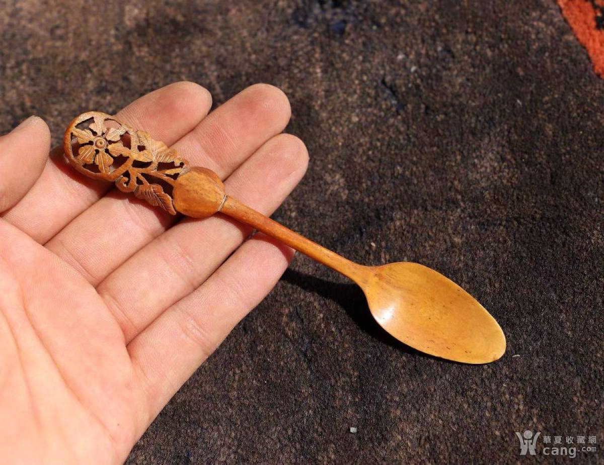 清代象g铲药小勺,小勺做工严谨规矩,勺把有花卉图案,工艺细腻