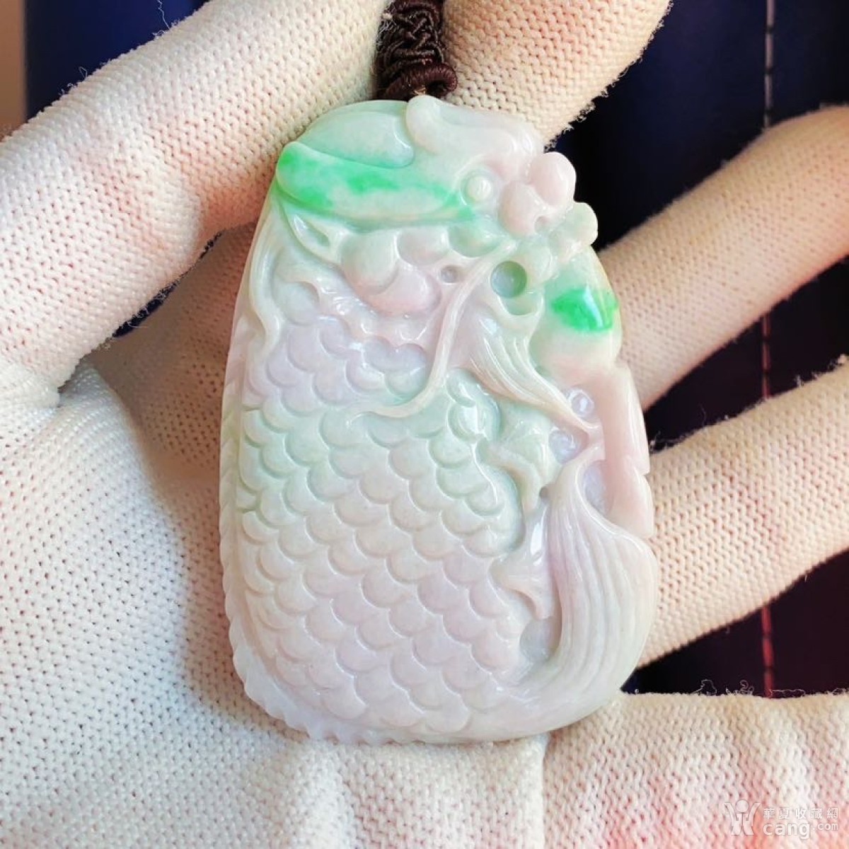 B970紫春俏绿天然原矿缅甸A货翡翠老坑飘阳绿鱼化龙招财龙鱼