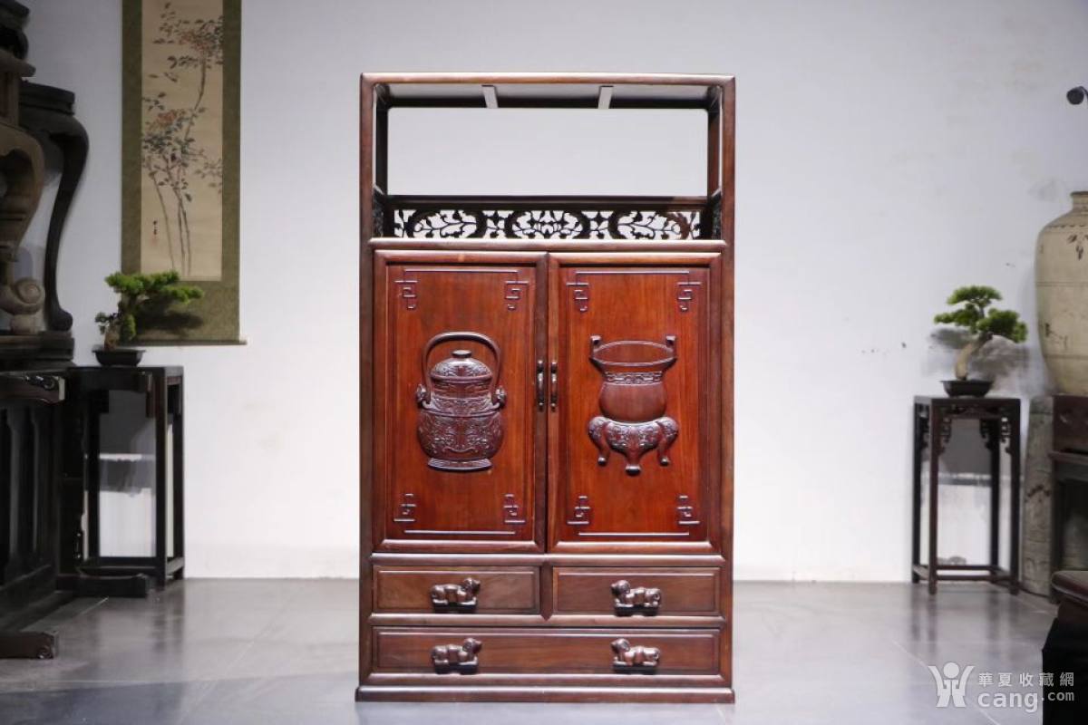 红木高浮雕博古纹——书柜; 取上等红木为材,