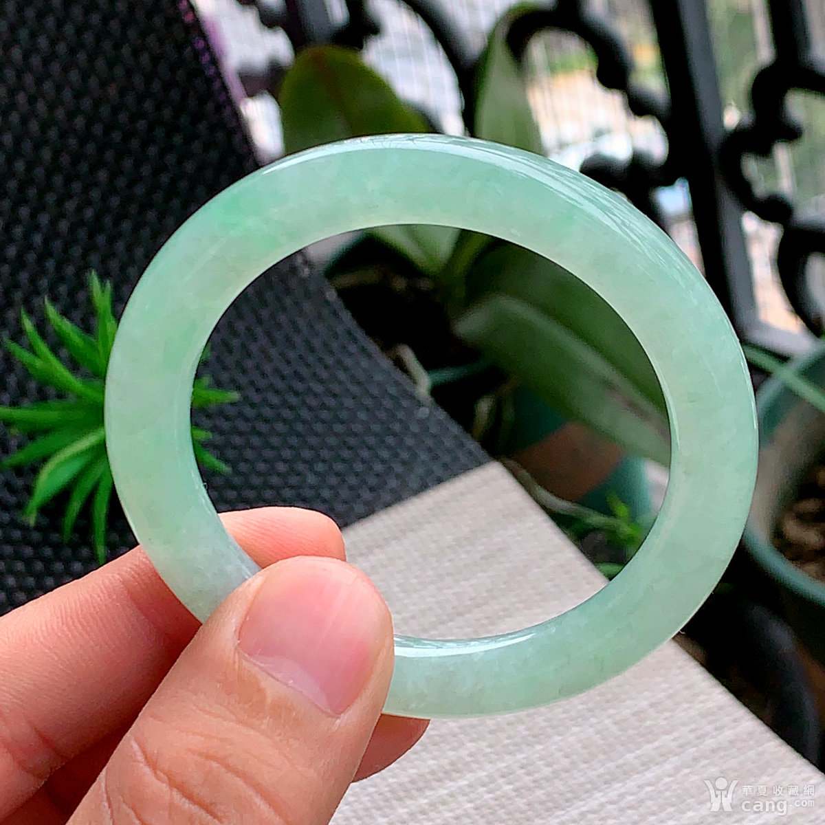 缅甸天然翡翠A货冰透水润满绿圆条手镯54圈口