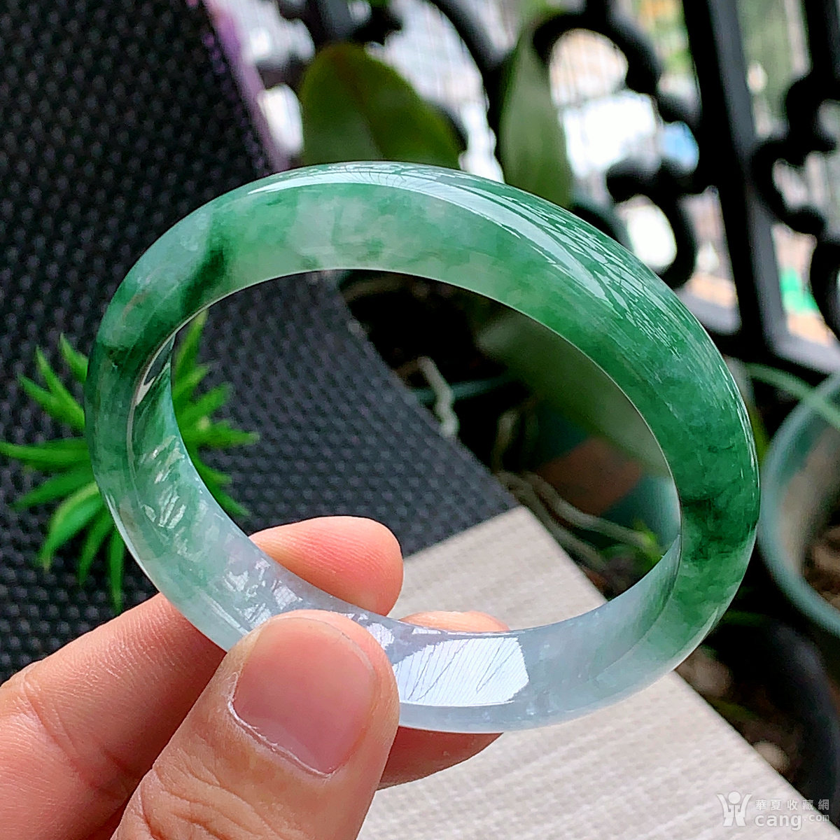 缅甸天然翡翠A货冰透水润飘绿宽边手镯59.8圈口