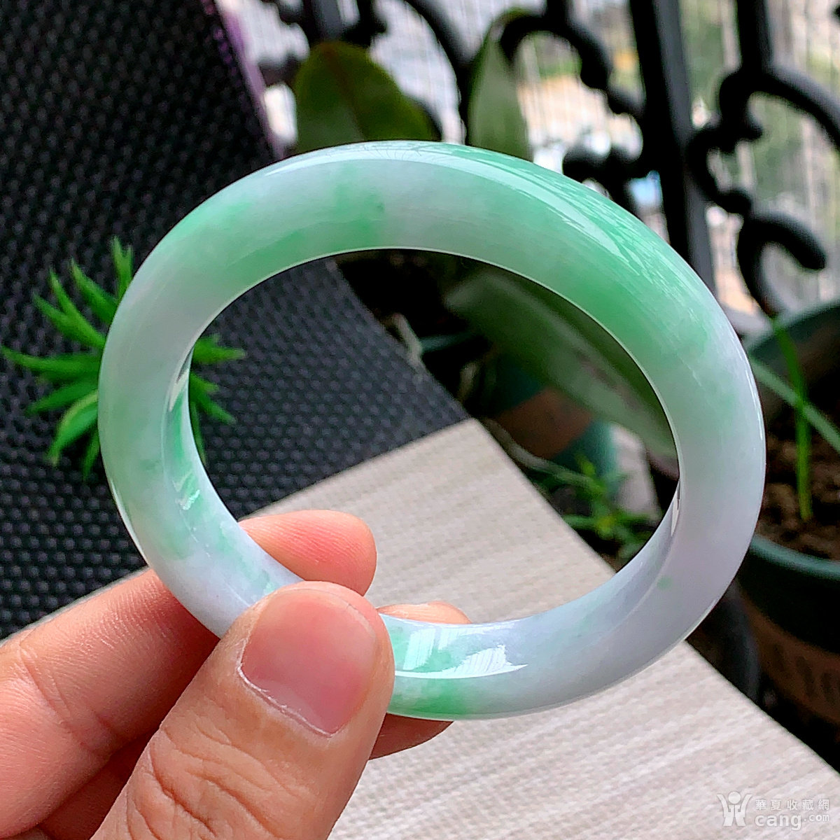 缅甸天然翡翠A货冰润飘绿大圈口宽边手镯60.5圈口
