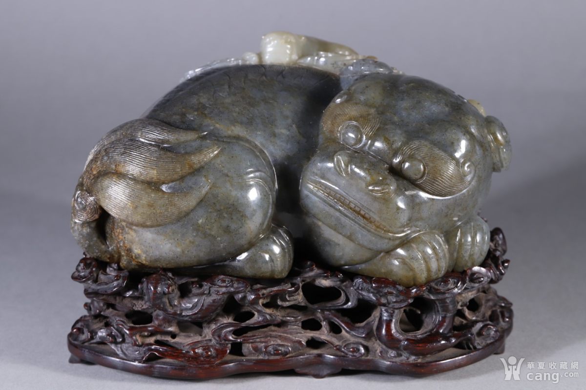 和田玉青花俏色太狮少狮摆件