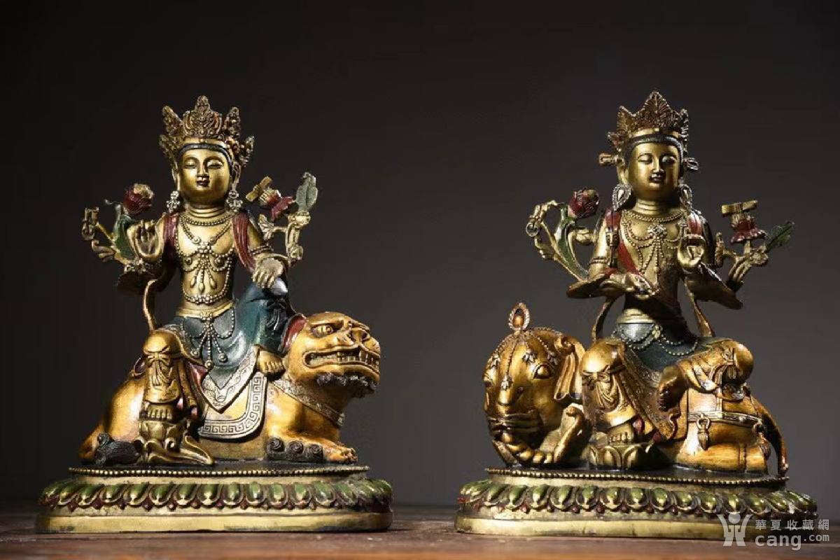 铜彩绘文殊普贤菩萨造像 单尊尺寸:高25cm 长20cm