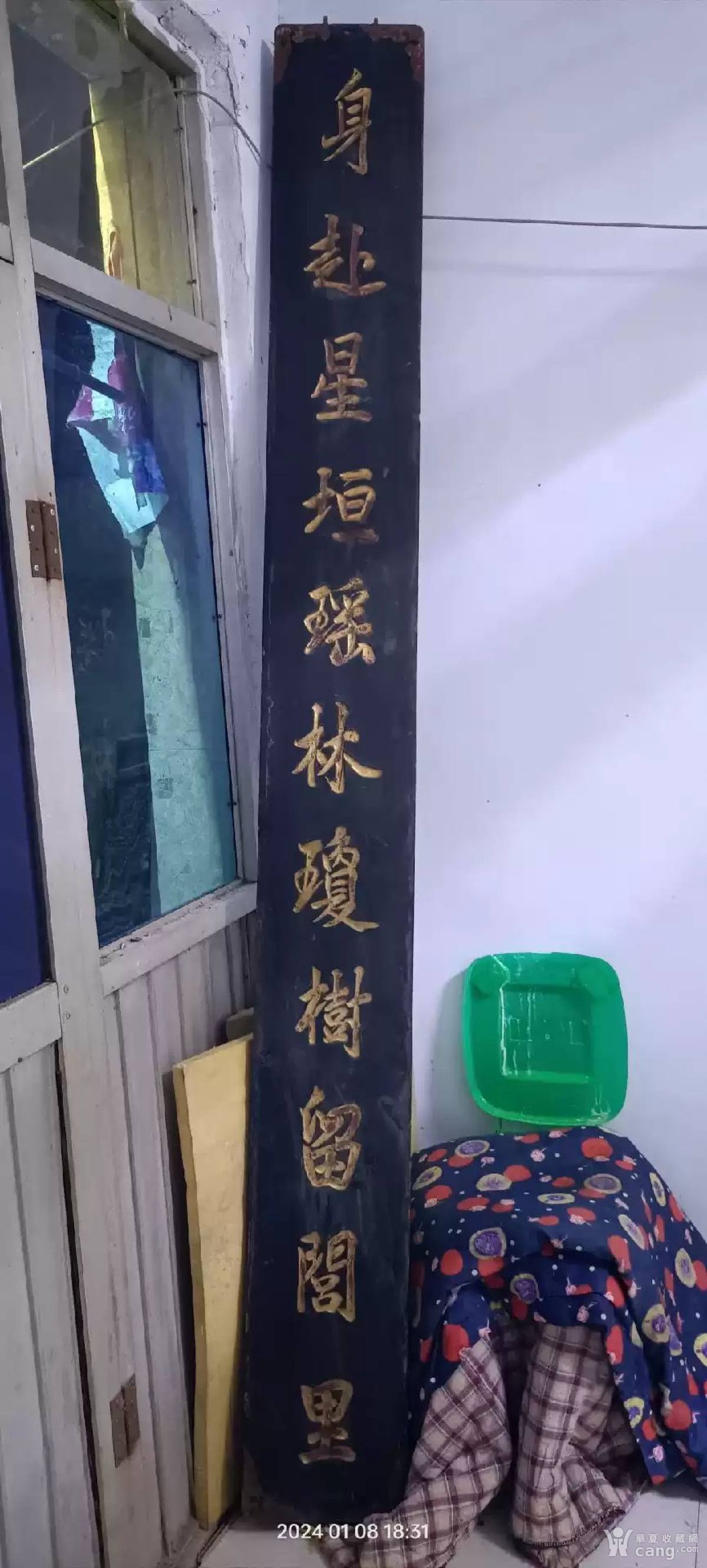 清代老木质对联,只有一个了,2.6米长。