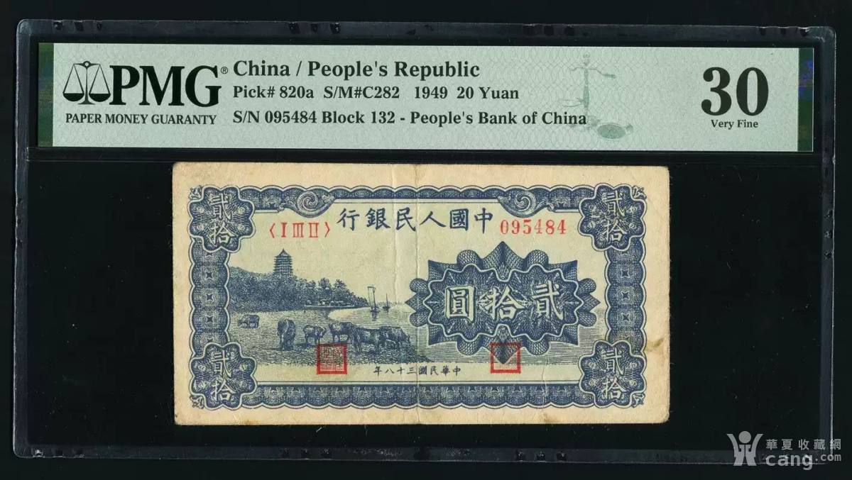 PMG 一版蓝色六和塔 二十元 30分 原票硬评
