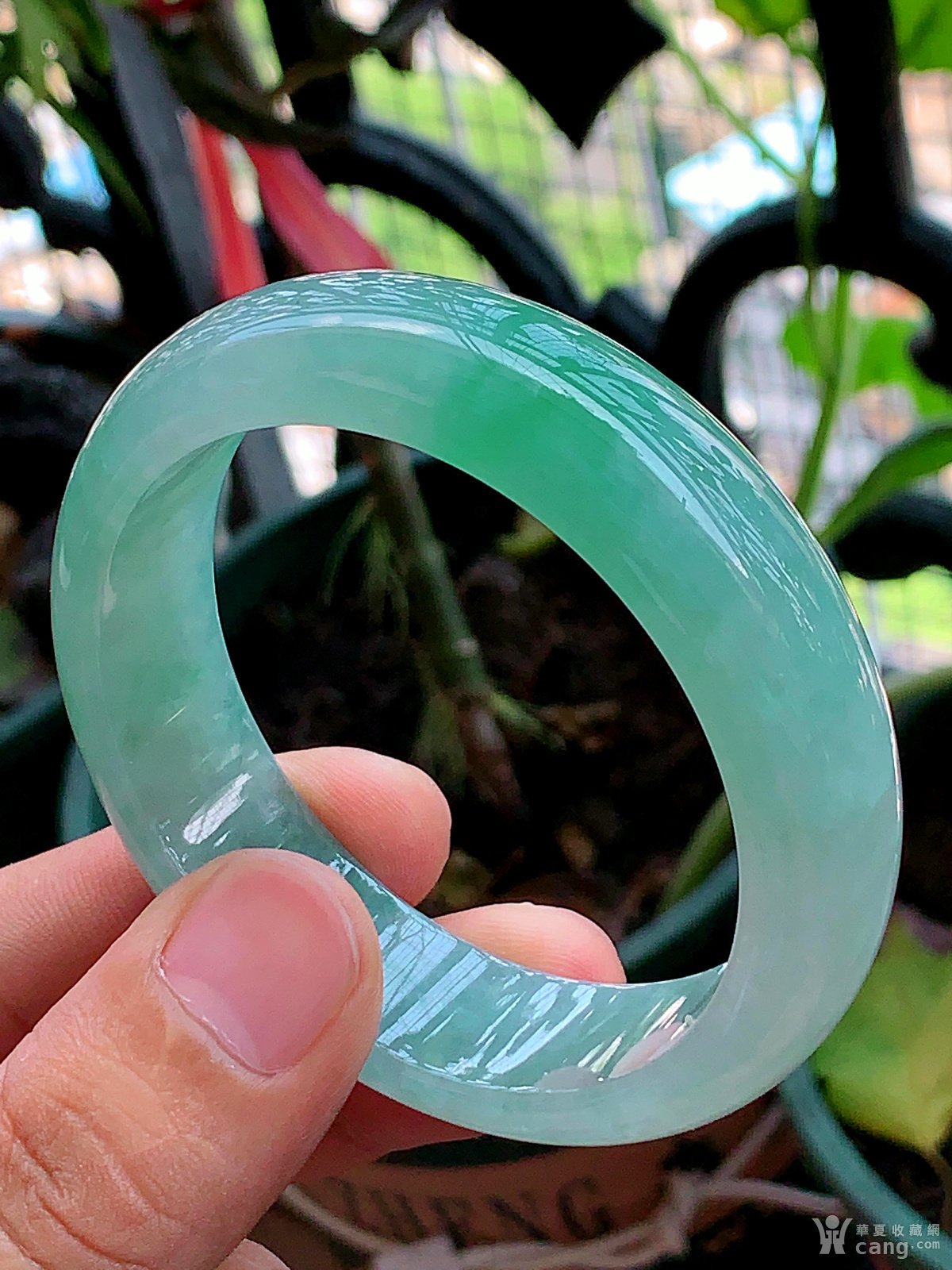 缅甸天然翡翠A货冰透水润飘花宽边手镯58.2圈口