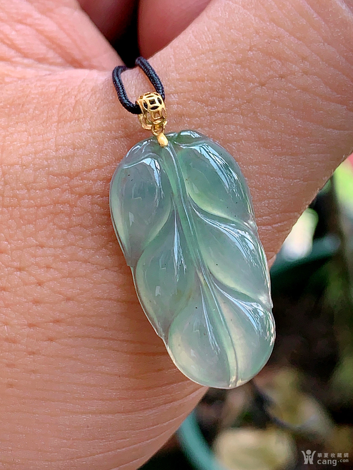 缅甸天然翡翠A货18k金扣冰透水润浅绿金枝玉叶吊坠