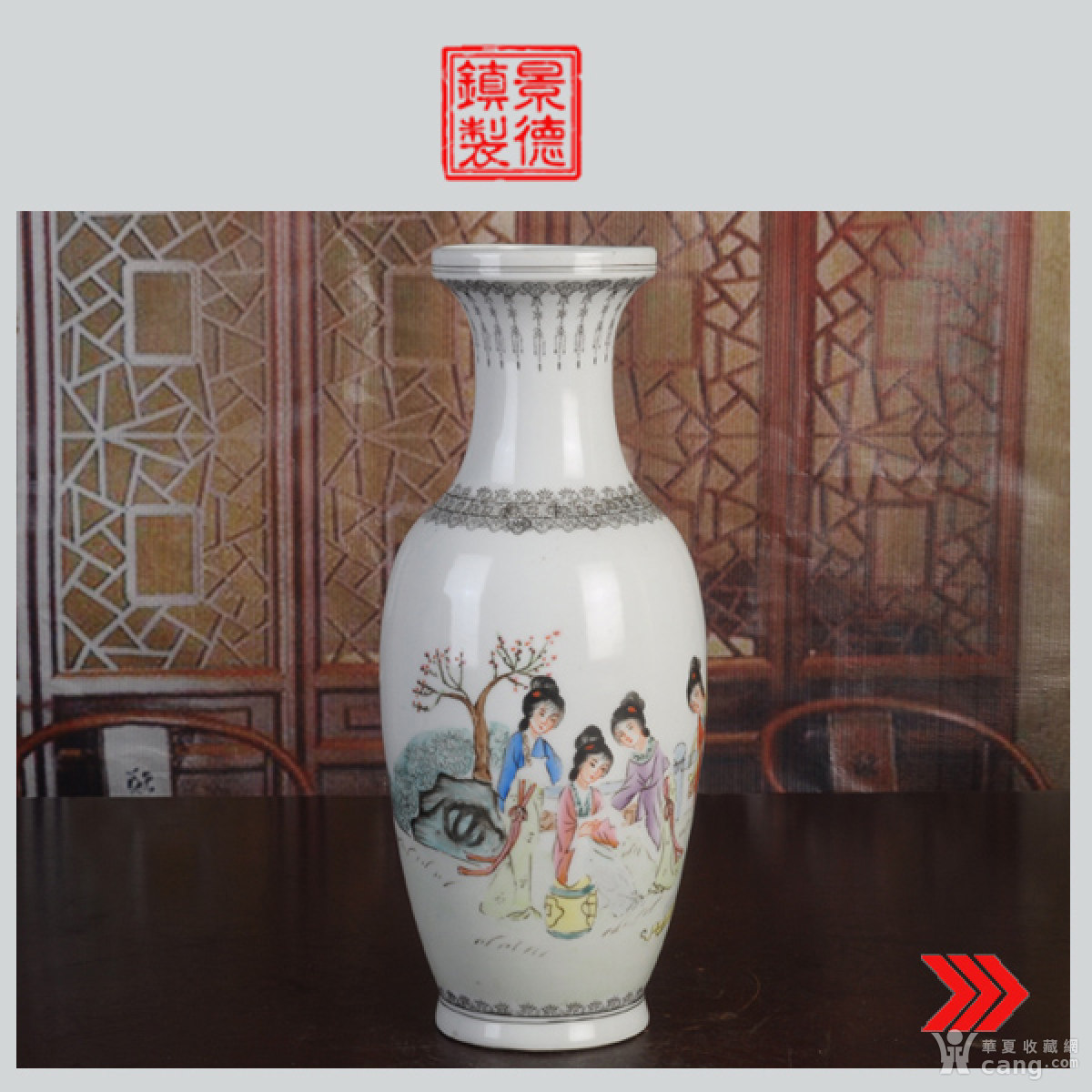 厂货全手工彩绘仕女图赏瓶