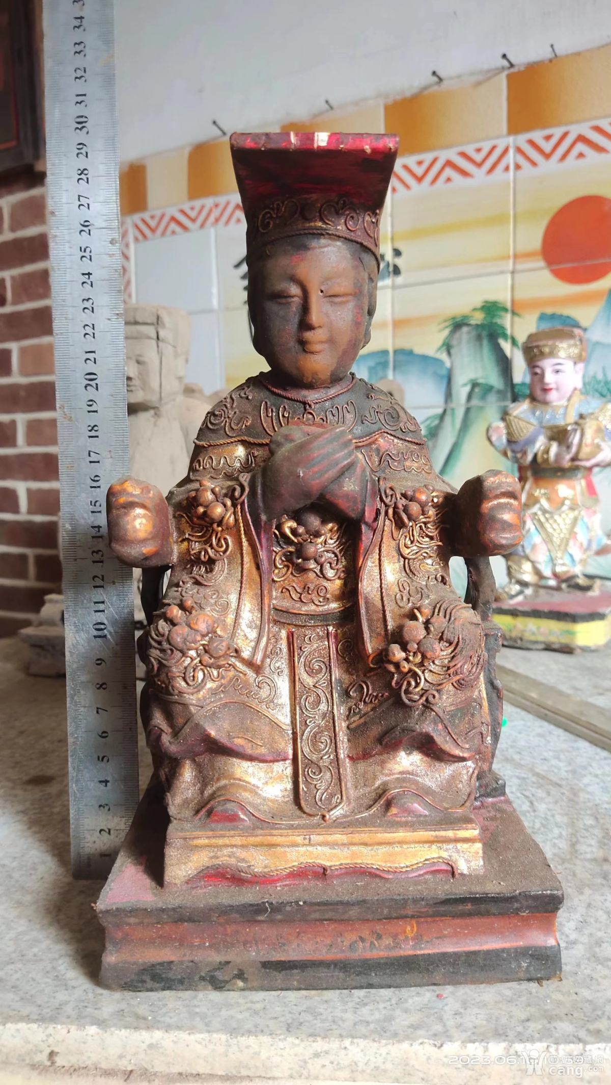 高度26厘米,老樟木雕妈祖菩萨神像佛像摆件,包邮,旧货