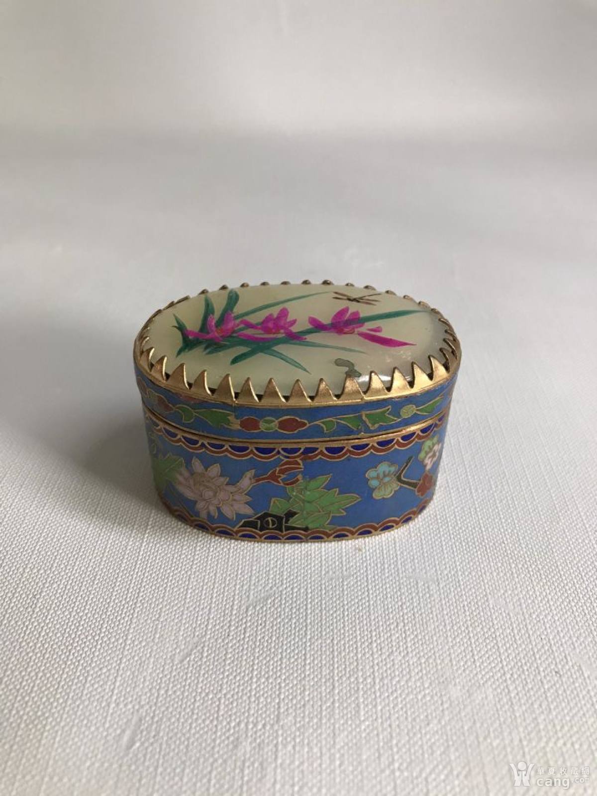 民国景泰蓝嵌玉手绘化妆盒