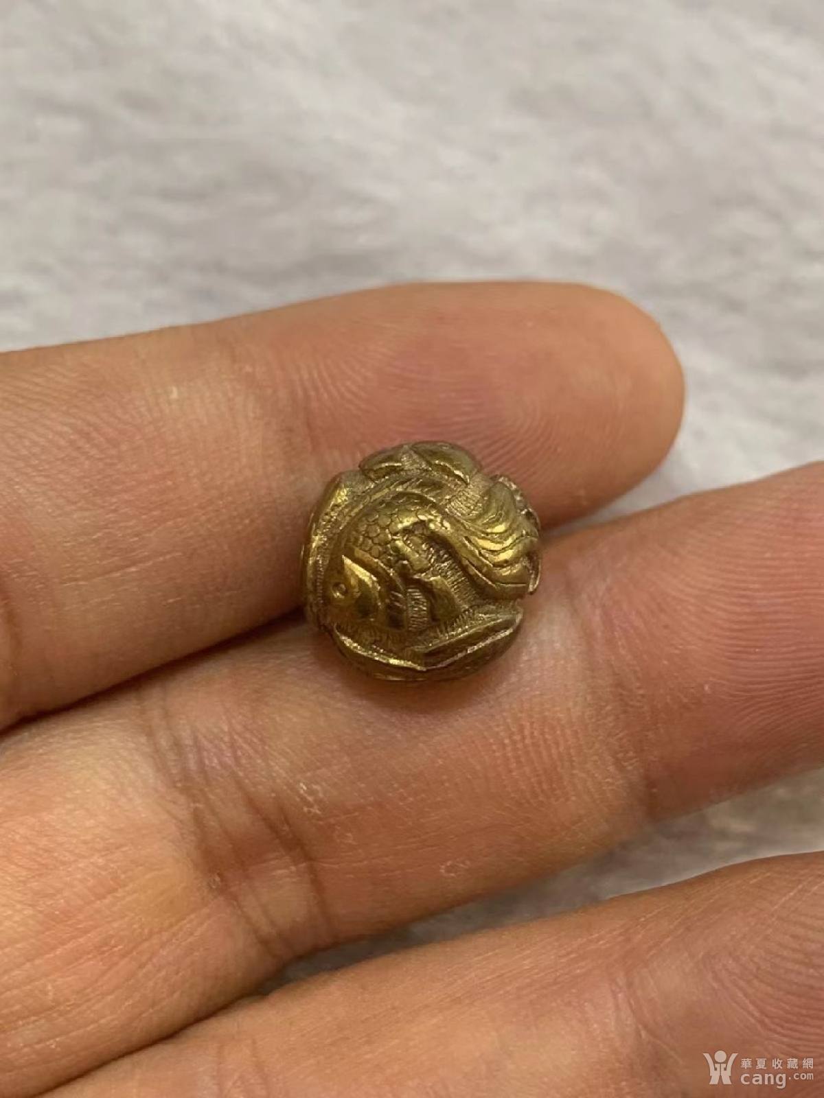 清末三只金鱼鎏金扣子一颗,