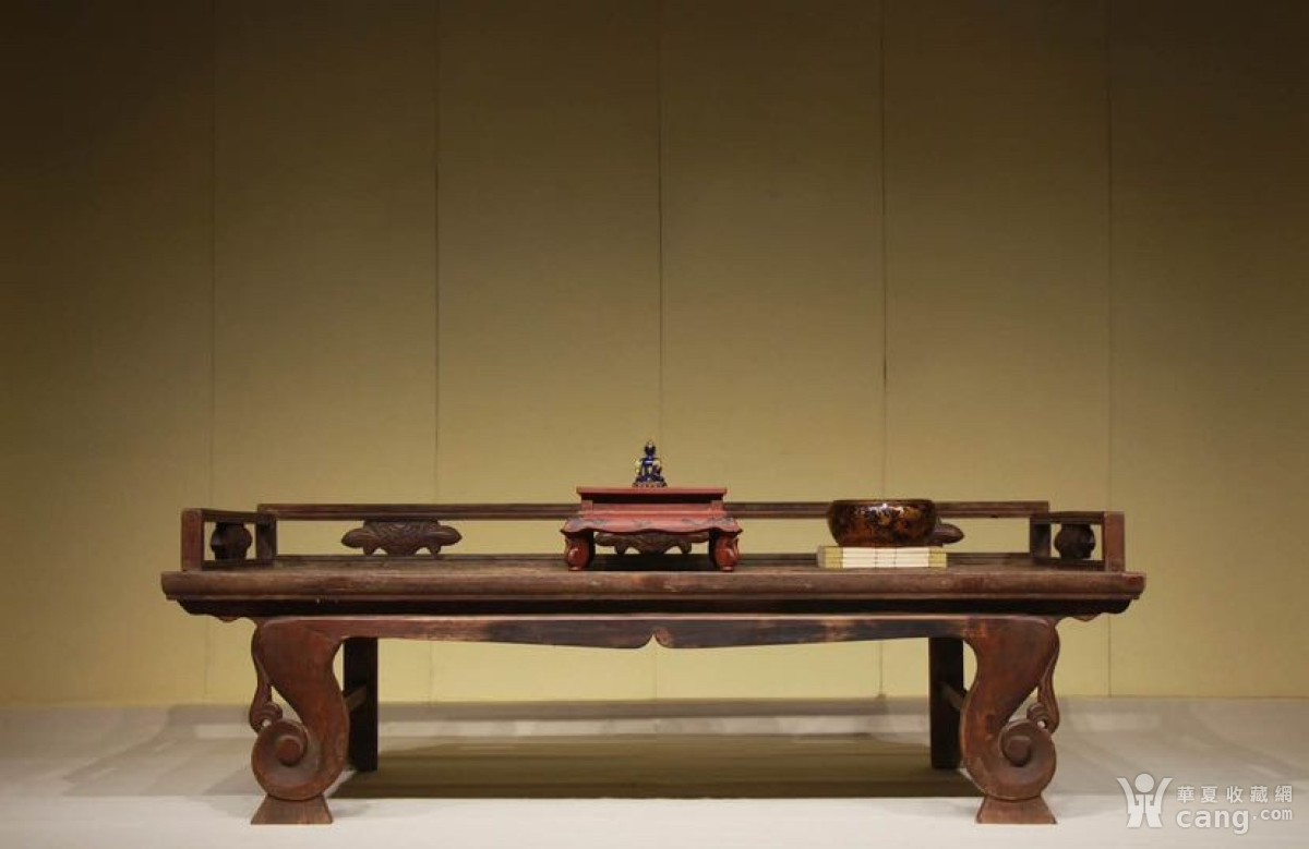 罗汉床 此罗汉床器型典雅,围栏处装有莲花,三弯腿,壼门式券