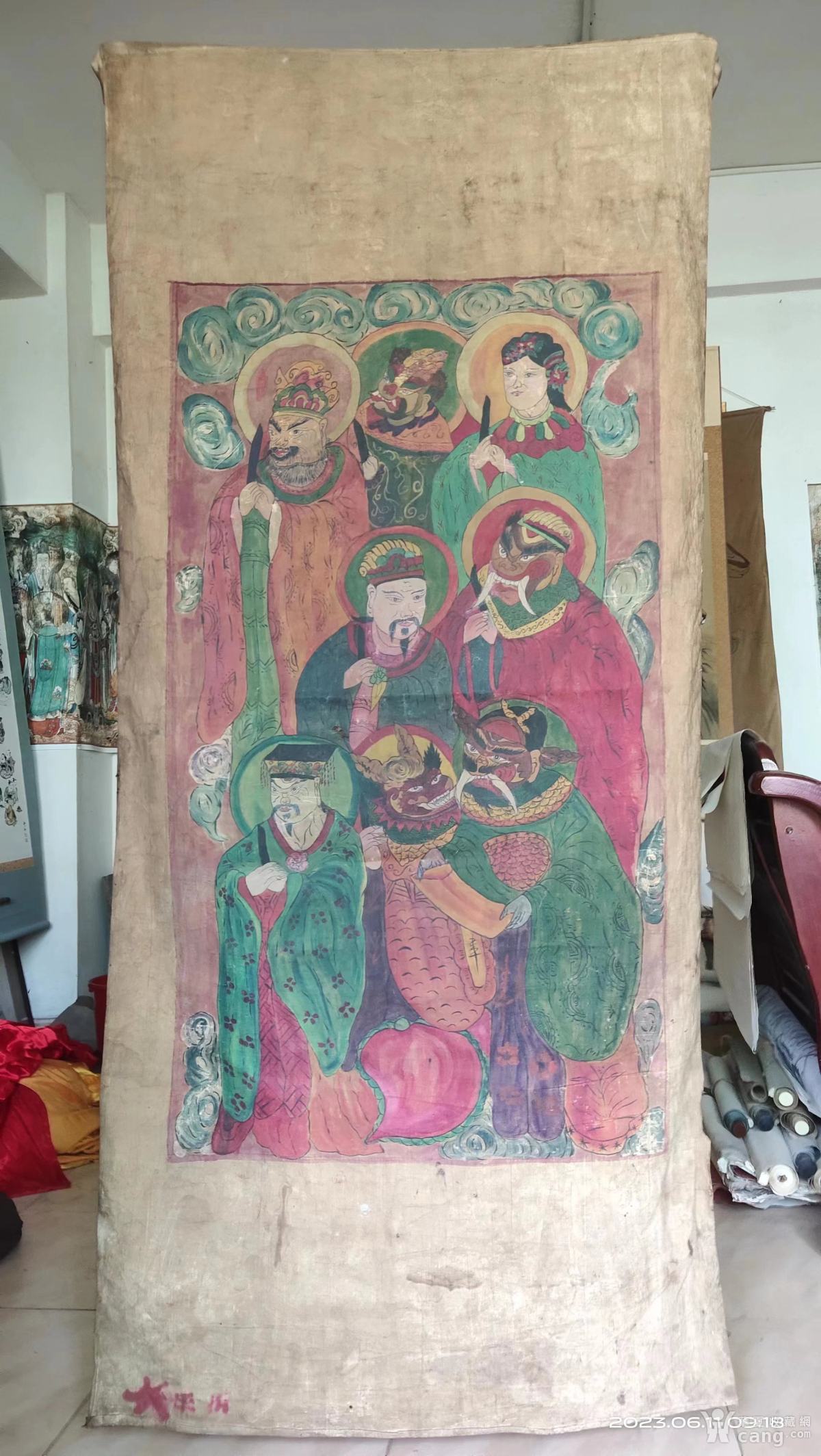 长190宽83厘米,手绘老布画神仙画,这开脸真是少见啊,包邮