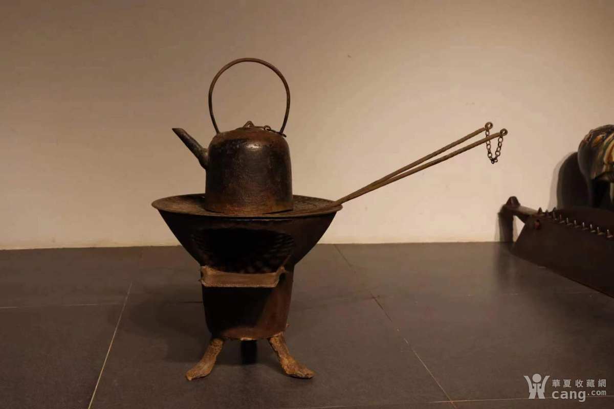 闲置铁艺空间,清代取暖 喝茶两不误 ,(火炉,铁壶,碳筷)一