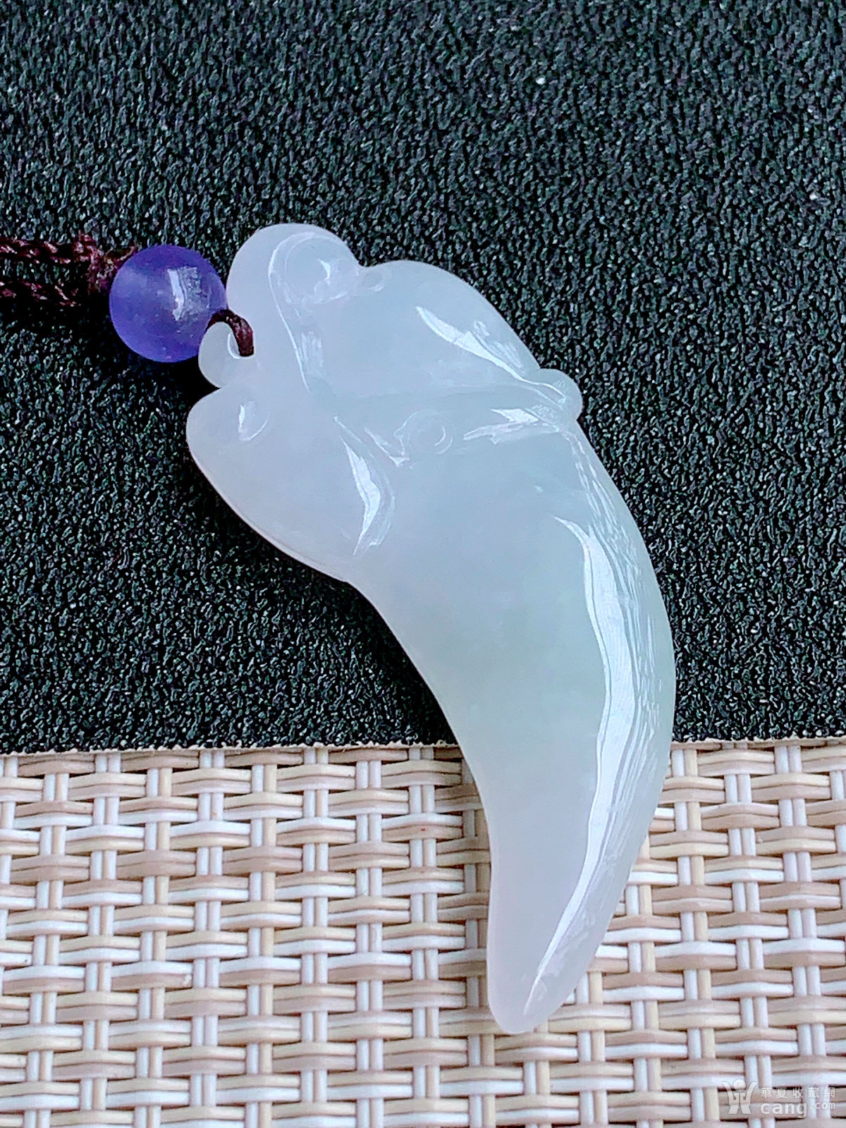 缅甸天然翡翠A货冰透水润龙牙吊坠