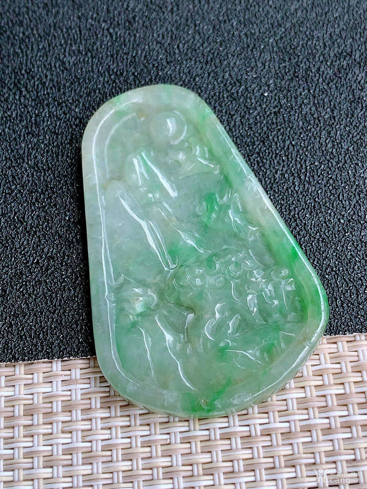 缅甸天然翡翠A货冰润飘花山水牌