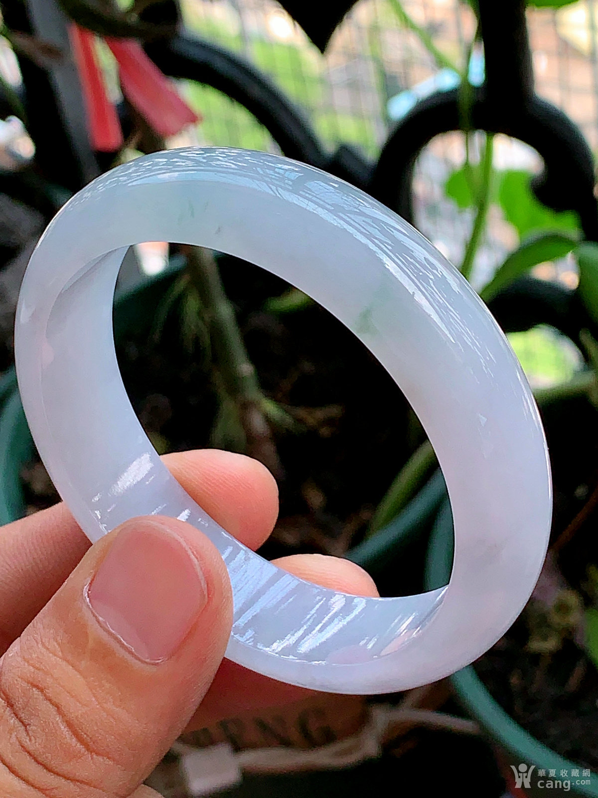 缅甸天然翡翠A货冰透水润浅紫宽边手镯58.2圈口
