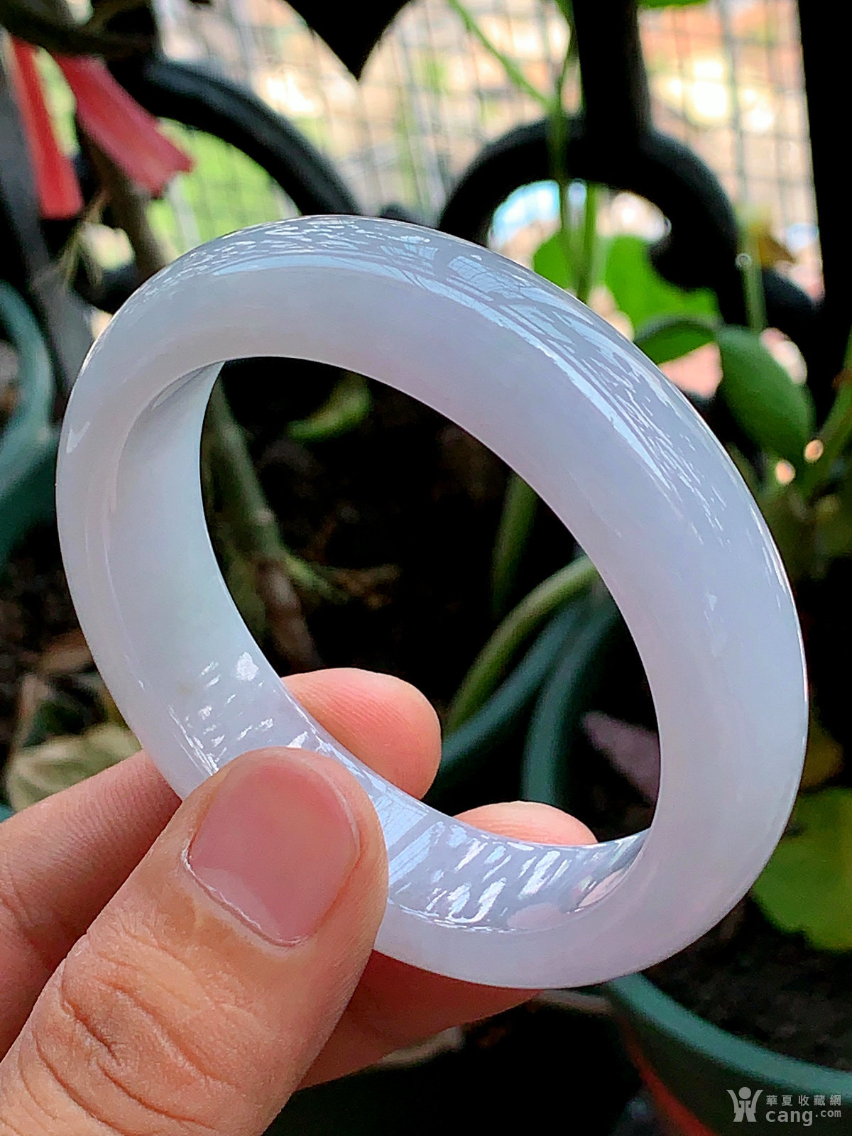 缅甸天然翡翠A货冰透水润浅紫宽边手镯56.8圈口