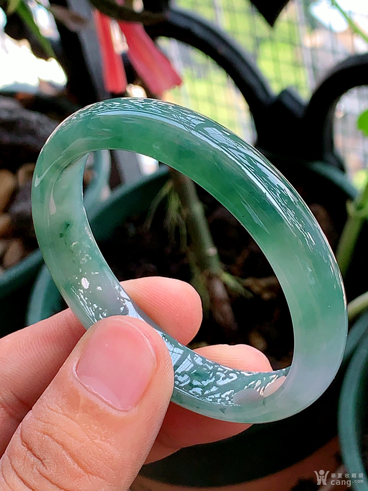 缅甸天然翡翠A货冰透水润飘花贵妃手镯54.6圈口