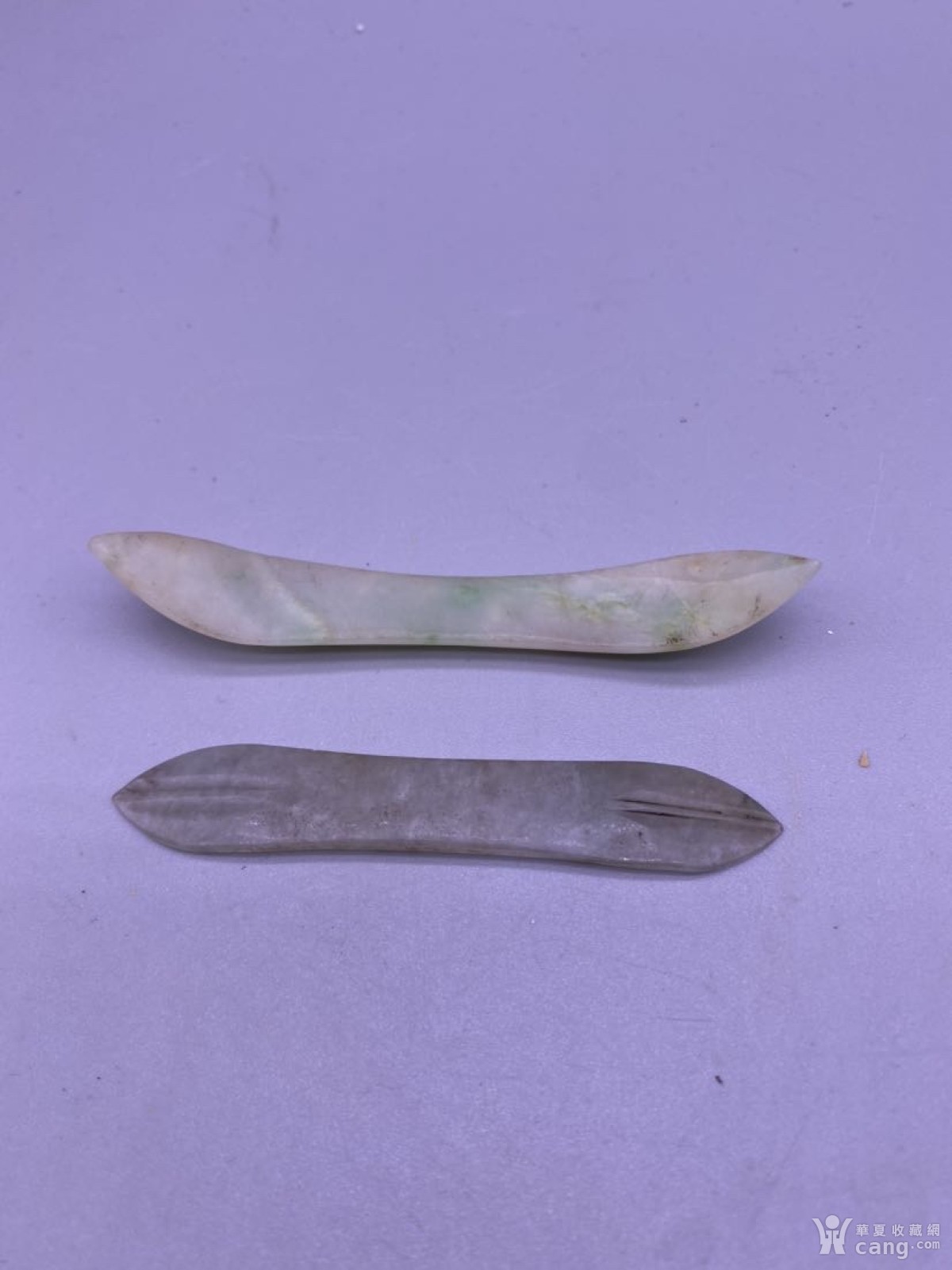 老翡翠簪子2支,尺寸分别8.2/9.1厘米,品相如图,300