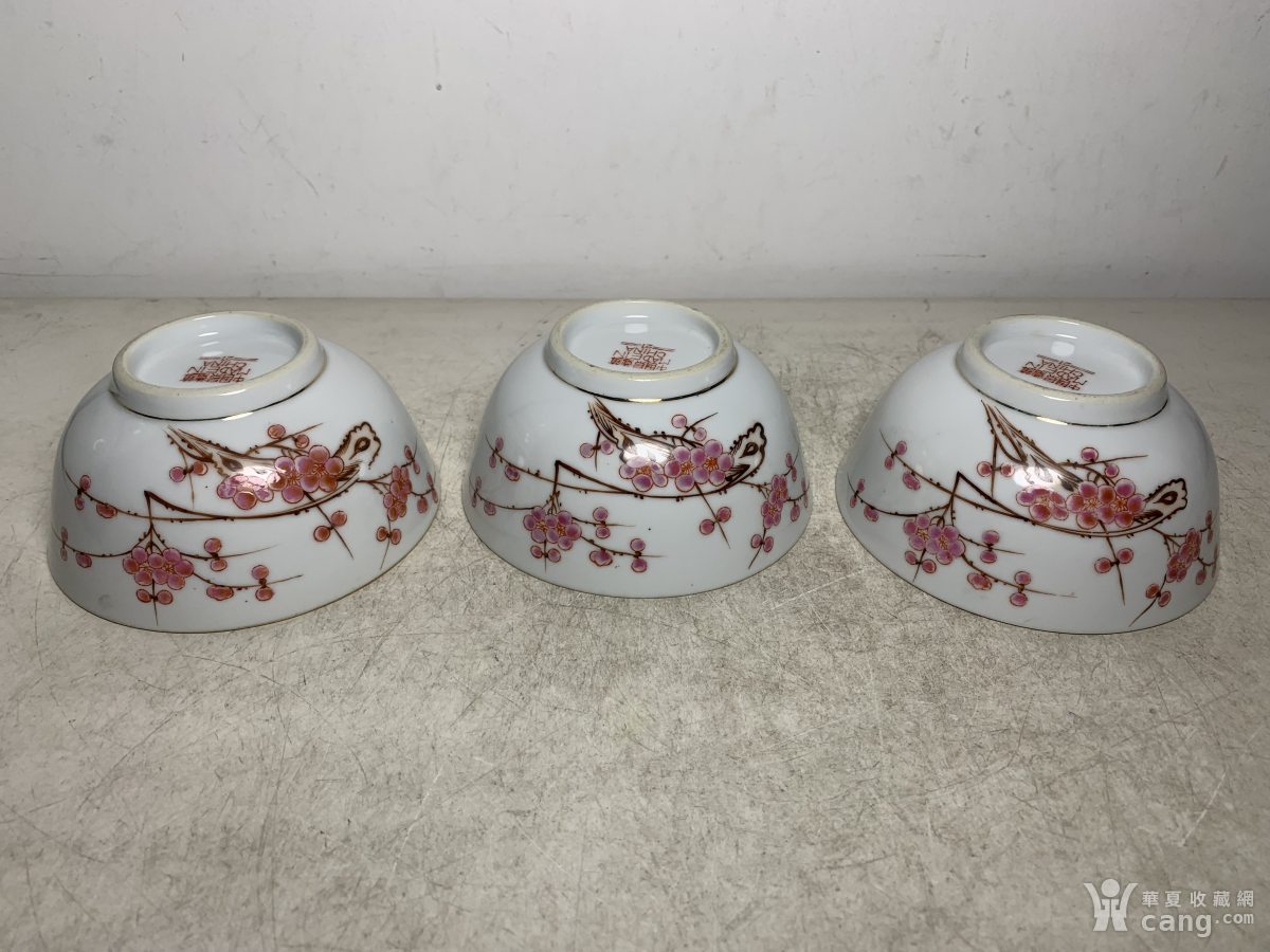 七十年代粉彩梅开五福梅花碗三个