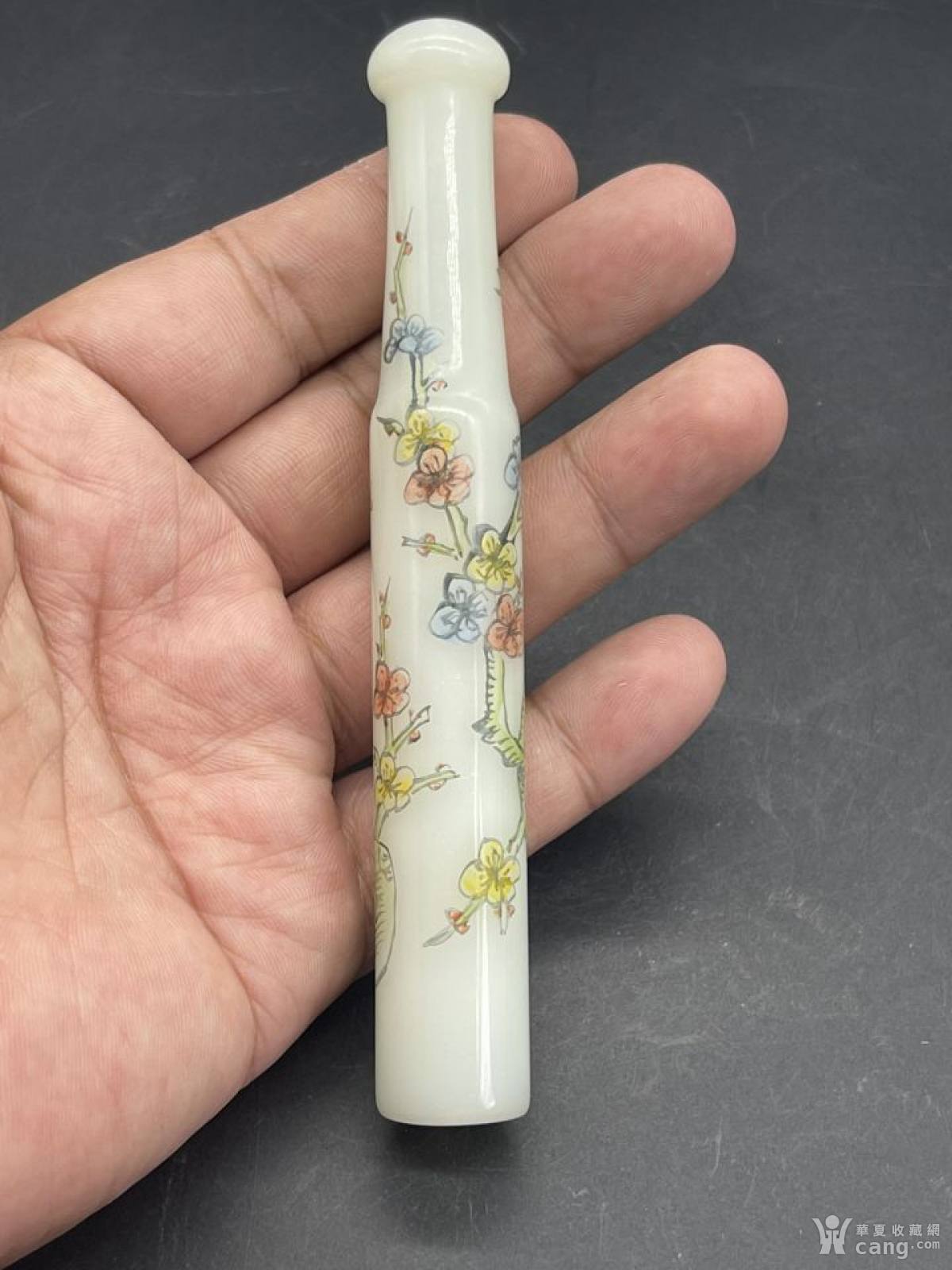 纯手绘喜上眉梢翡翠烟嘴一个,绘画精美绝伦,玉质晶莹剔透