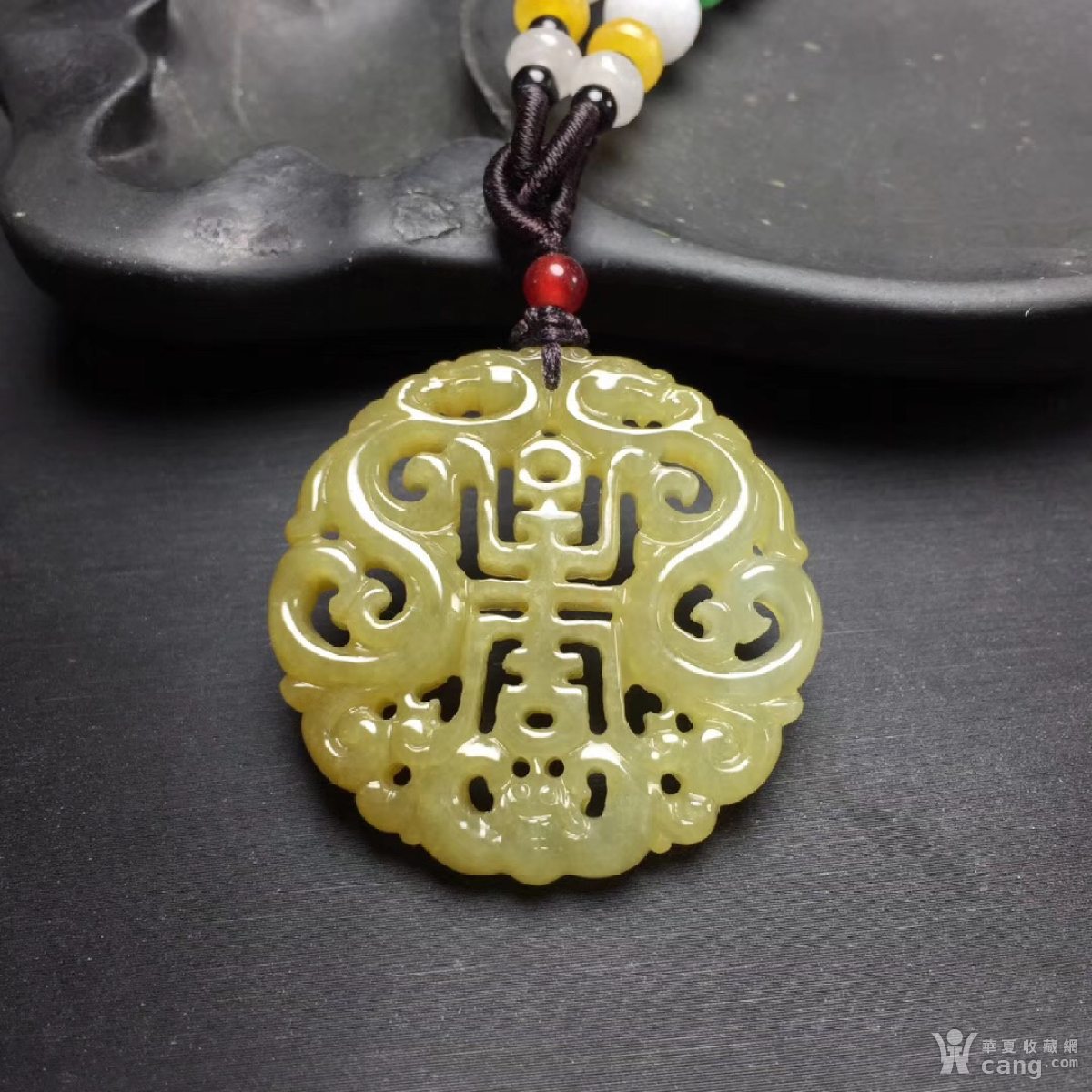 D627创汇期糯冰种天然黄翡翡翠 双龙寿字 吊坠