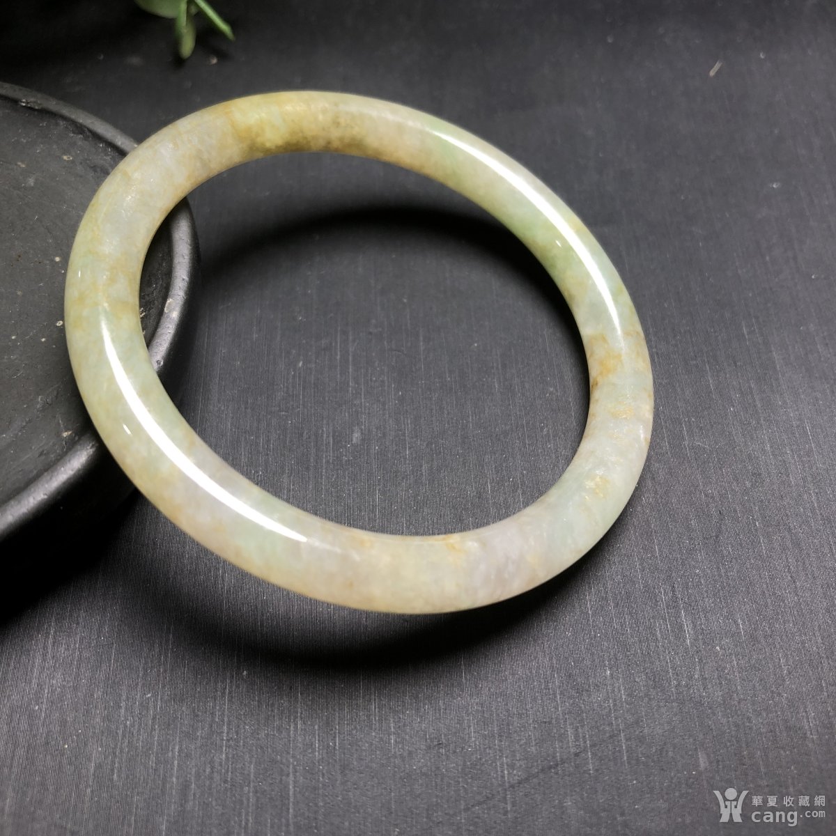 F382老库存糯冰种飘黄翡翠细管圆条手镯