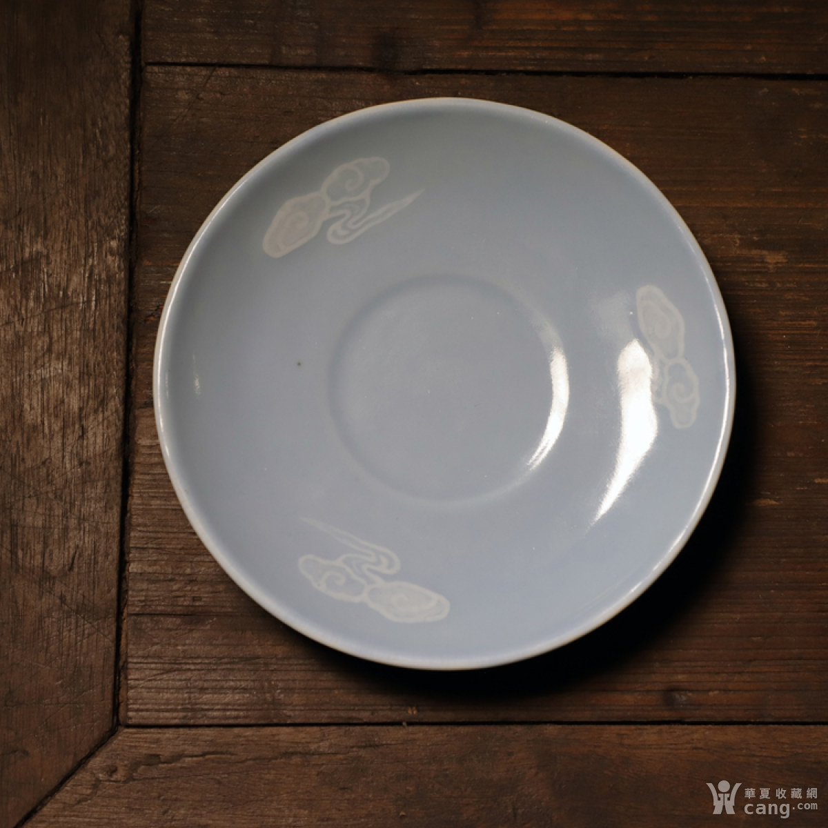 50年代柴窑天青釉堆白盘
