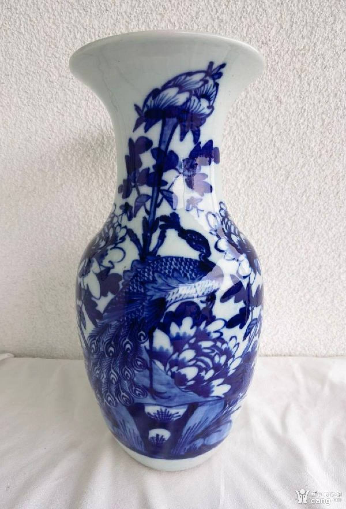 晚清青花孔雀牡丹瓶