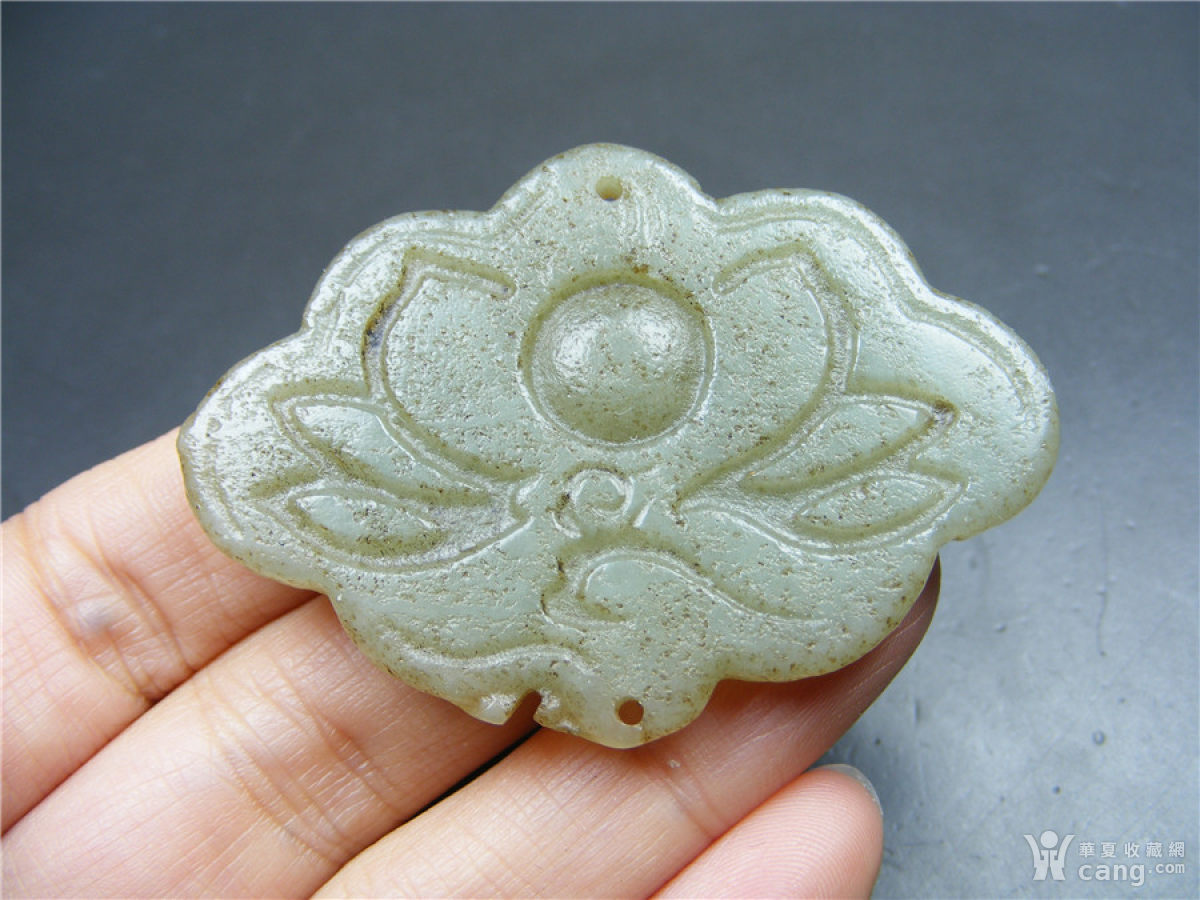 259 和田玉带沁手工雕单面工上下带孔浅打洼小宝相花帽饰