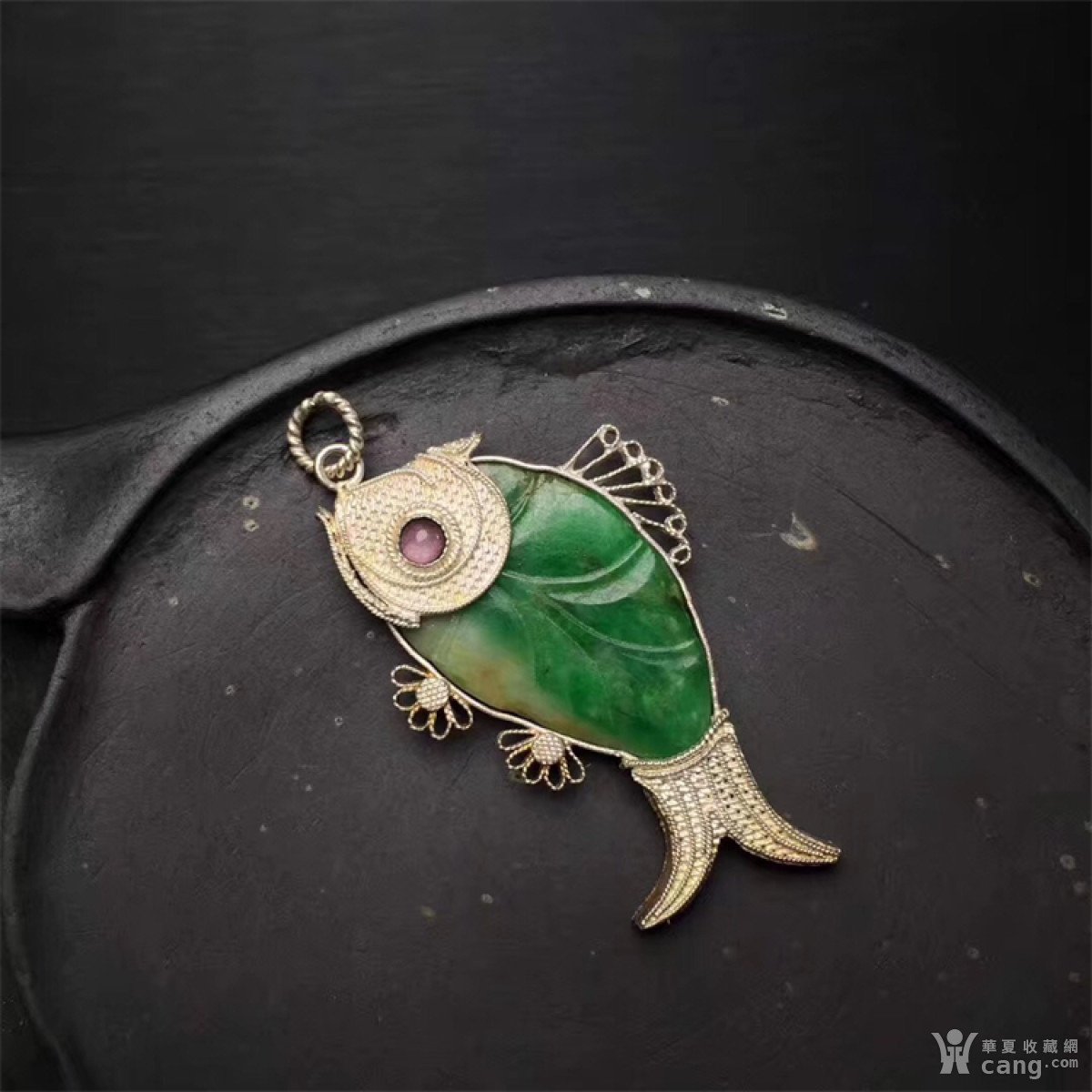 v183回流925银掐丝镶清代老翡翠鲤鱼挂件